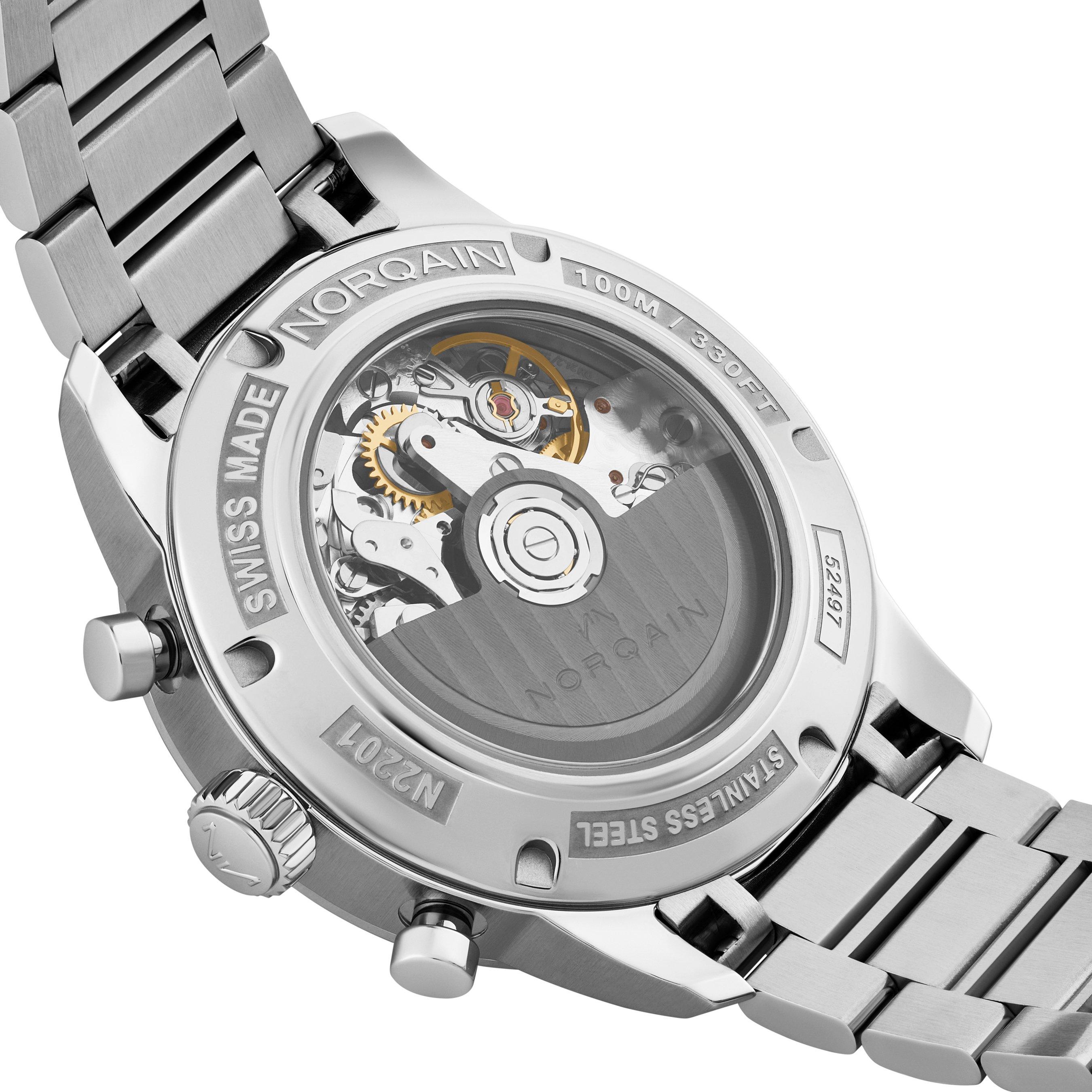 - Powered by NORQAIN Calibre N19 (Sellita SW510 a) mechanical automatic chronograph movement