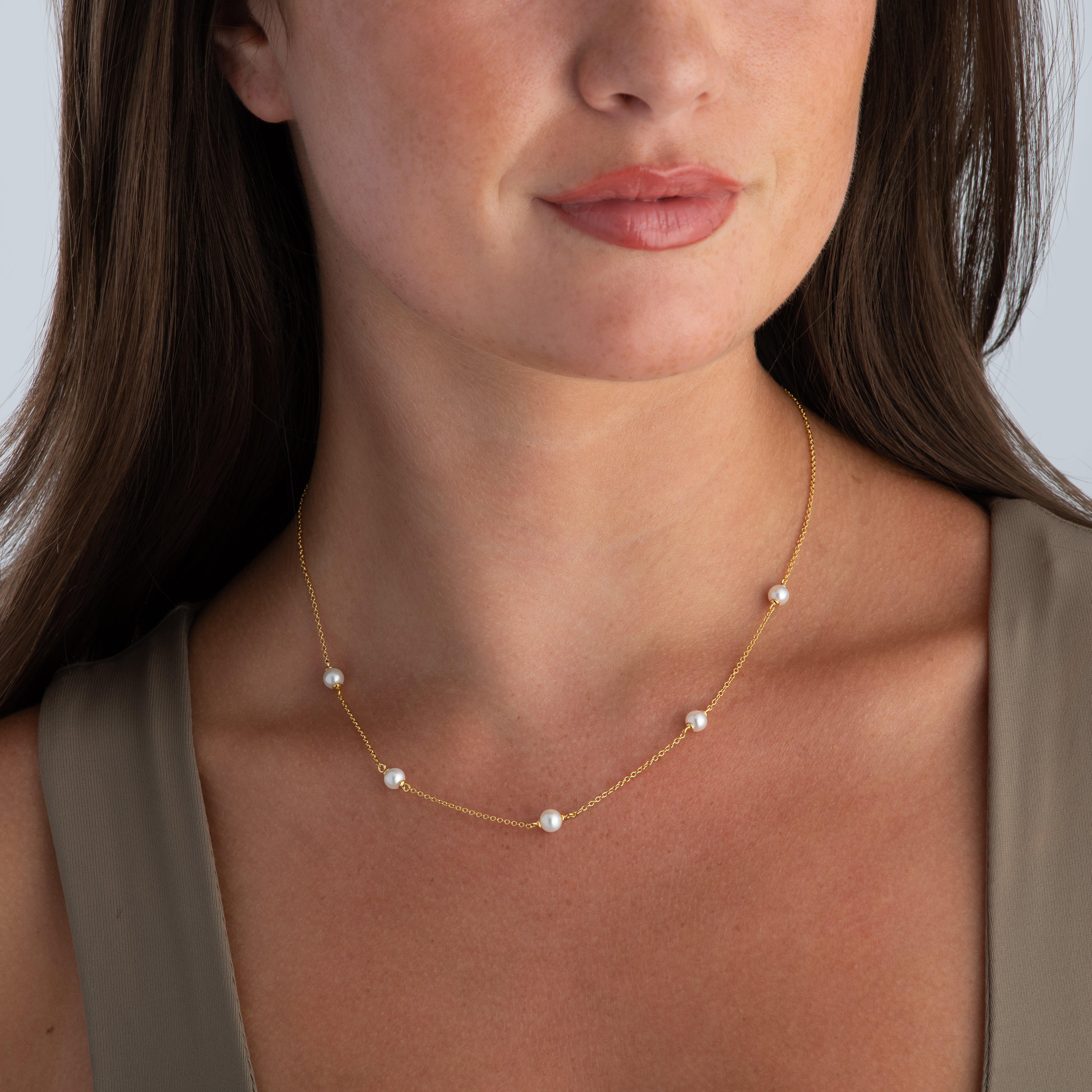 Take on the ultimate look of elegance with this Sif Jakobs Padua Cinque Yellow Gold Plated Freshwater Pearl Necklace, a breath-taking blend of contemporary detailing and classically refined materials.
