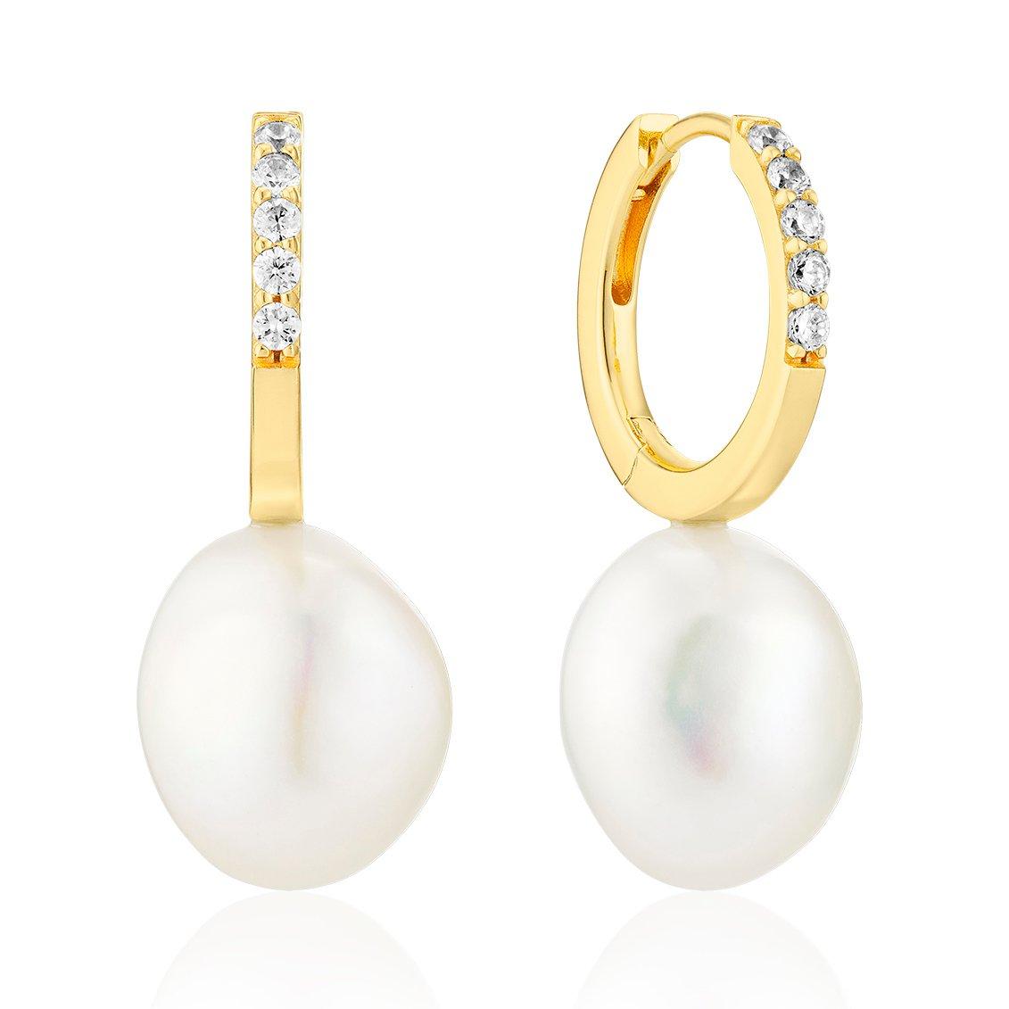 Sif Jakobs Padua Uno 18ct Yellow Gold Plated Freshwater Pearl Cubic Zirconia Hoop Earrings