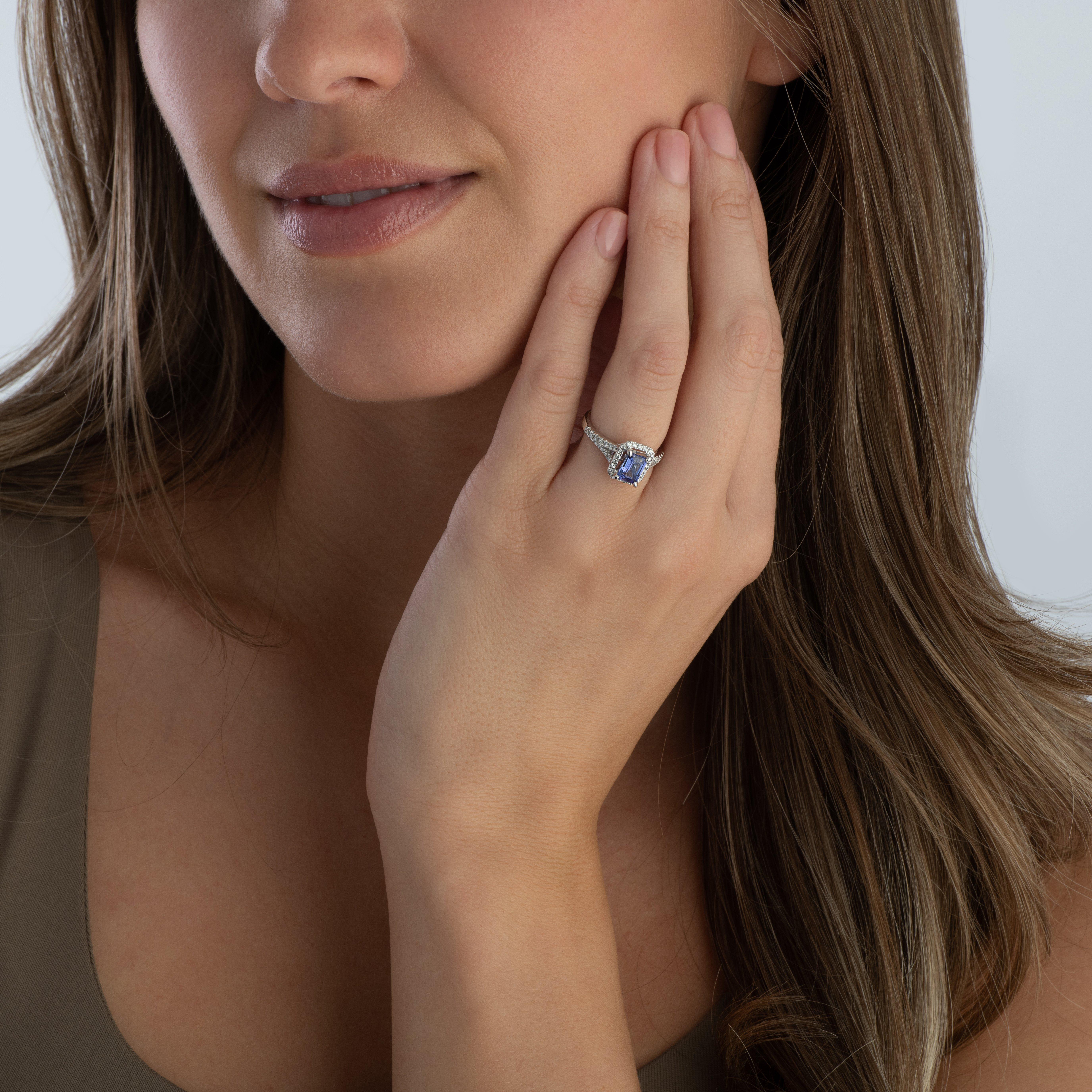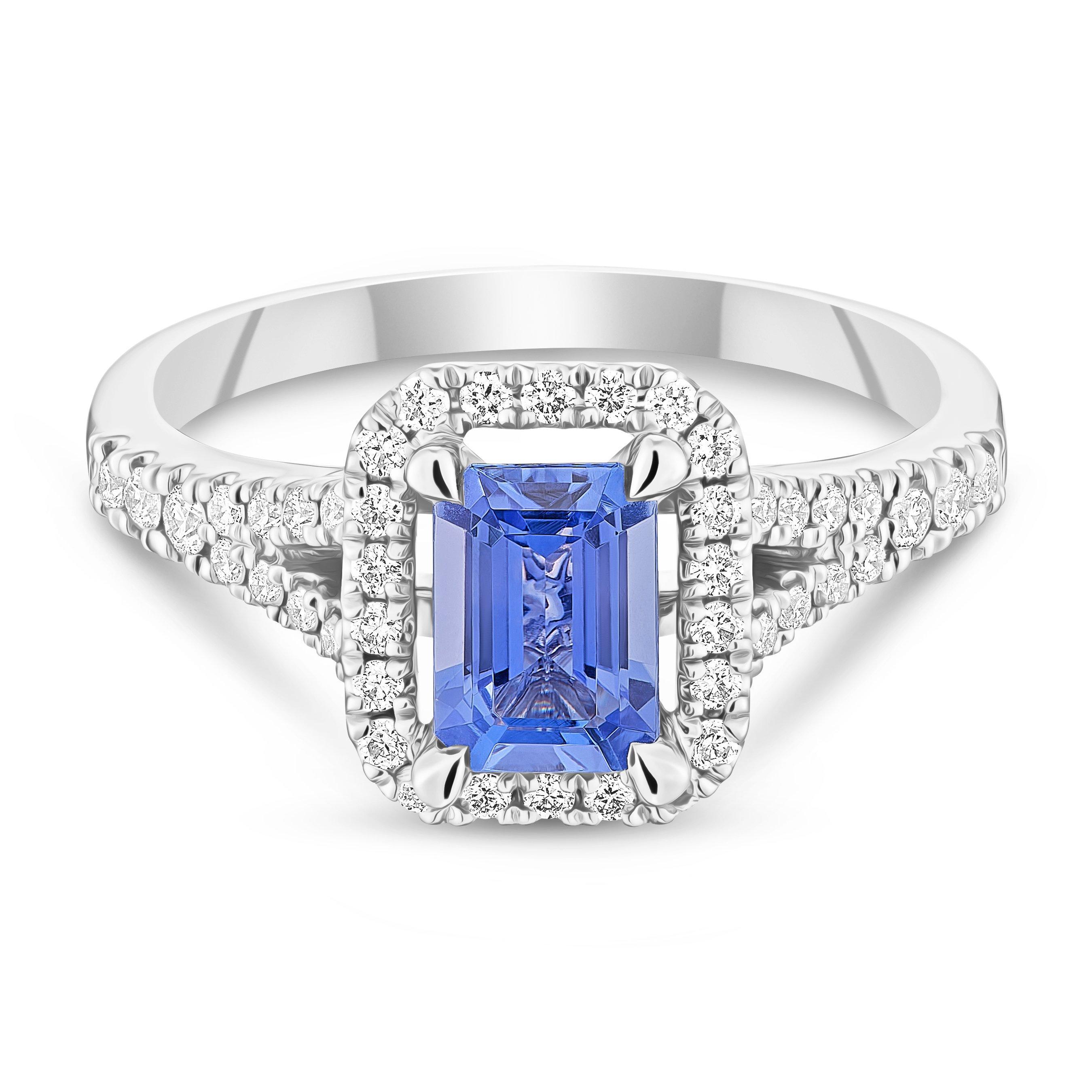 Blending luxury, colour, and timeless craftsmanship, this Platinum Diamond Tanzanite Halo Engagement Ring features a captivating tanzanite at its heart. Surrounded by a halo of round brilliant diamonds elevating the gemstones vibrant hues, celebrate your romance with a sparkle as unique as the love it represents.