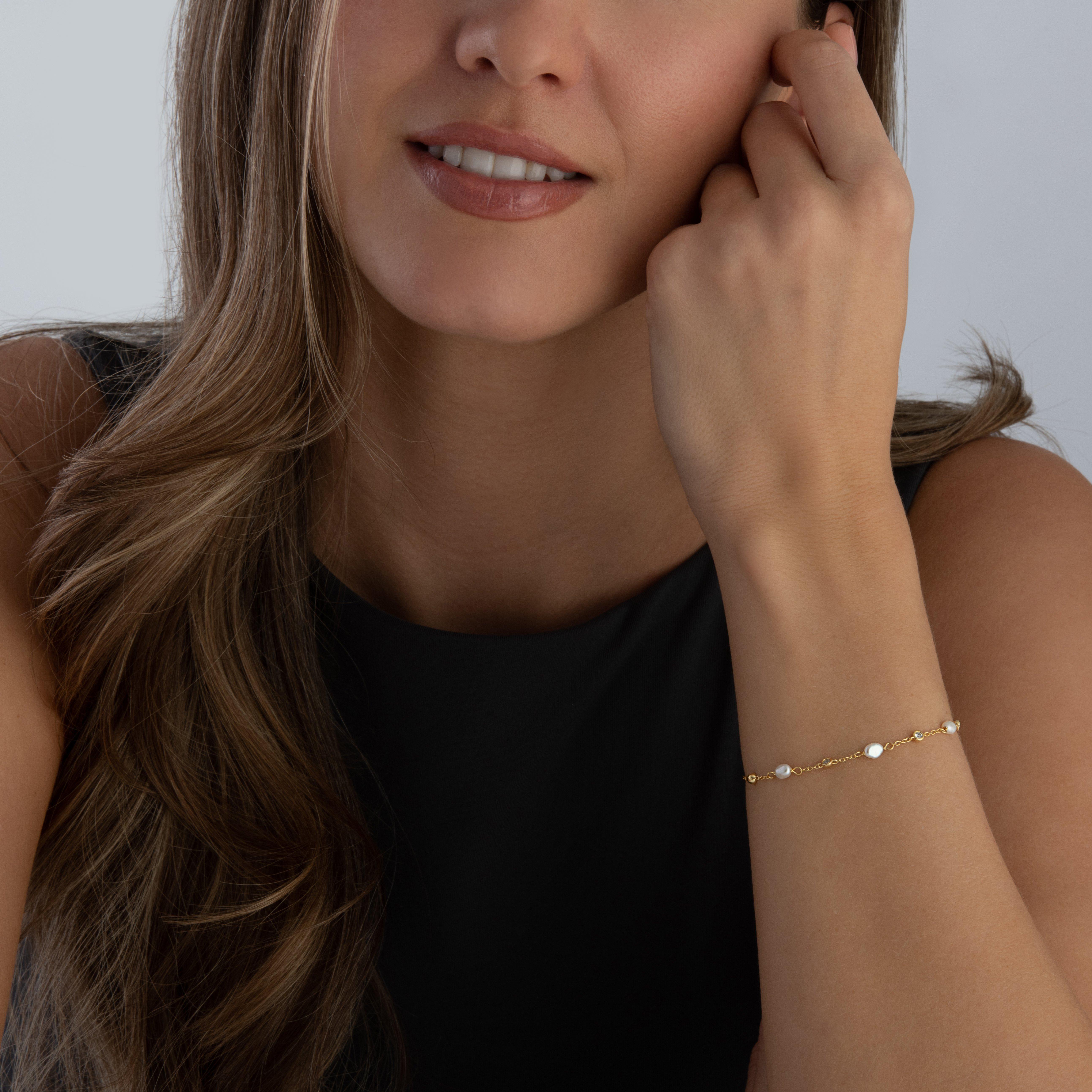Astley Clarke 18ct Yellow Gold Vermeil Pearl White Sapphire Bracelet