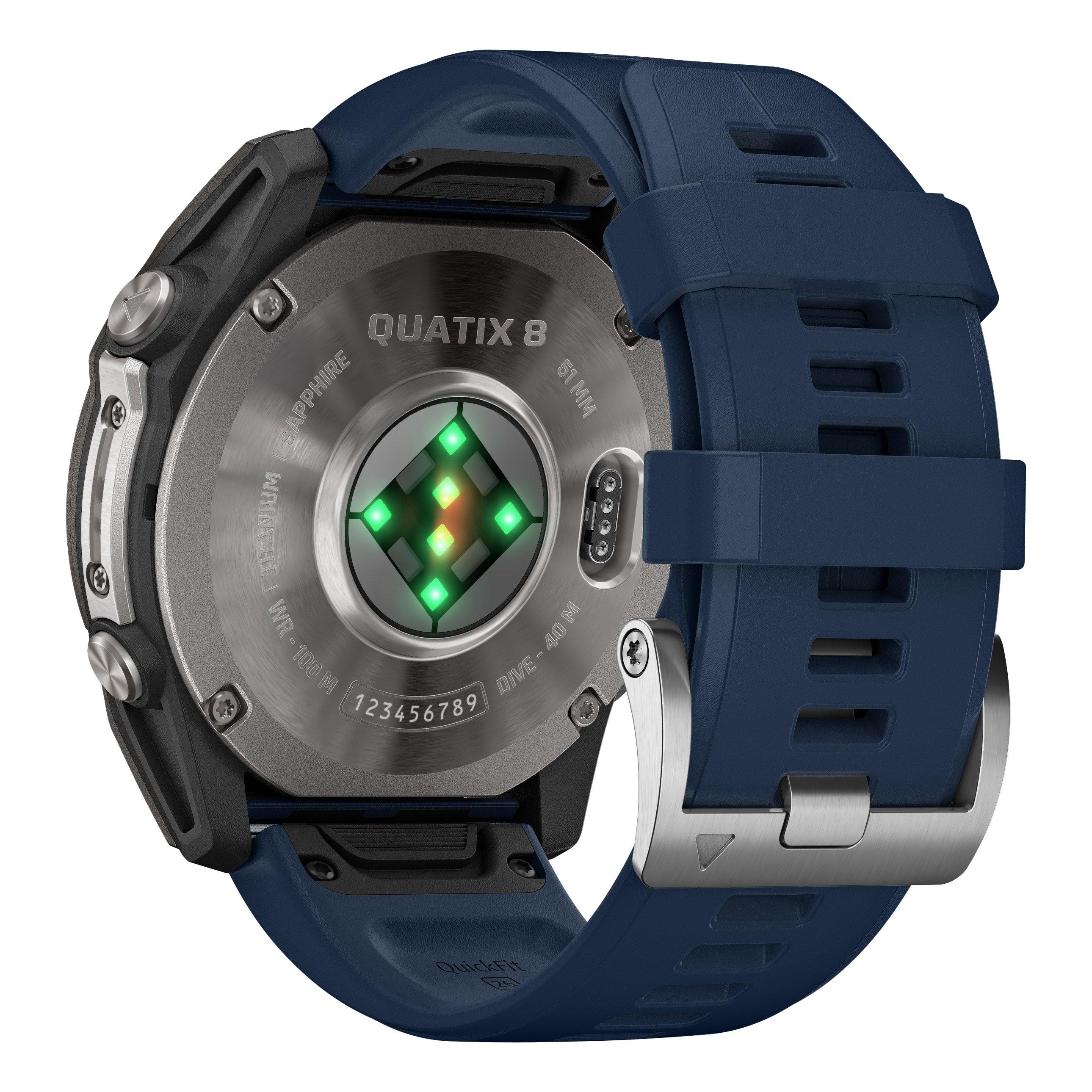 Delivering all the features you need to plot your paradise, captain your day with this Garmin Quatix 8 AMOELD 51mm Titanium Smartwatch, the ultimate nautical companion.