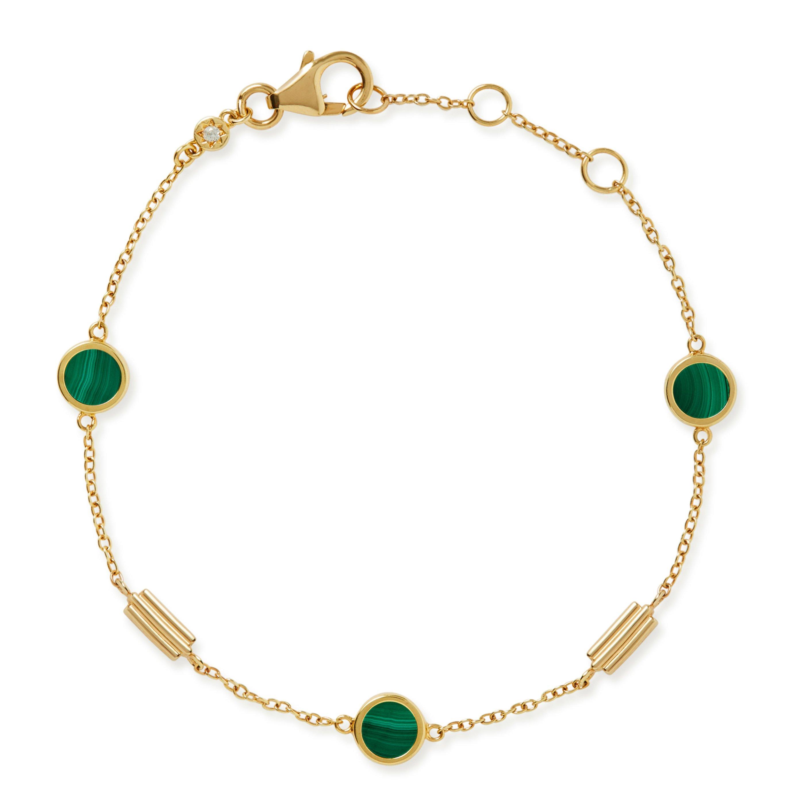Showcasing your passion for bold design, this Astley Clarke Stilla 18ct Yellow Gold Green Malachite Bracelet has been elegantly crafted with bursts of captivating green malachite and alternating detailing to bring your everyday look to life.
