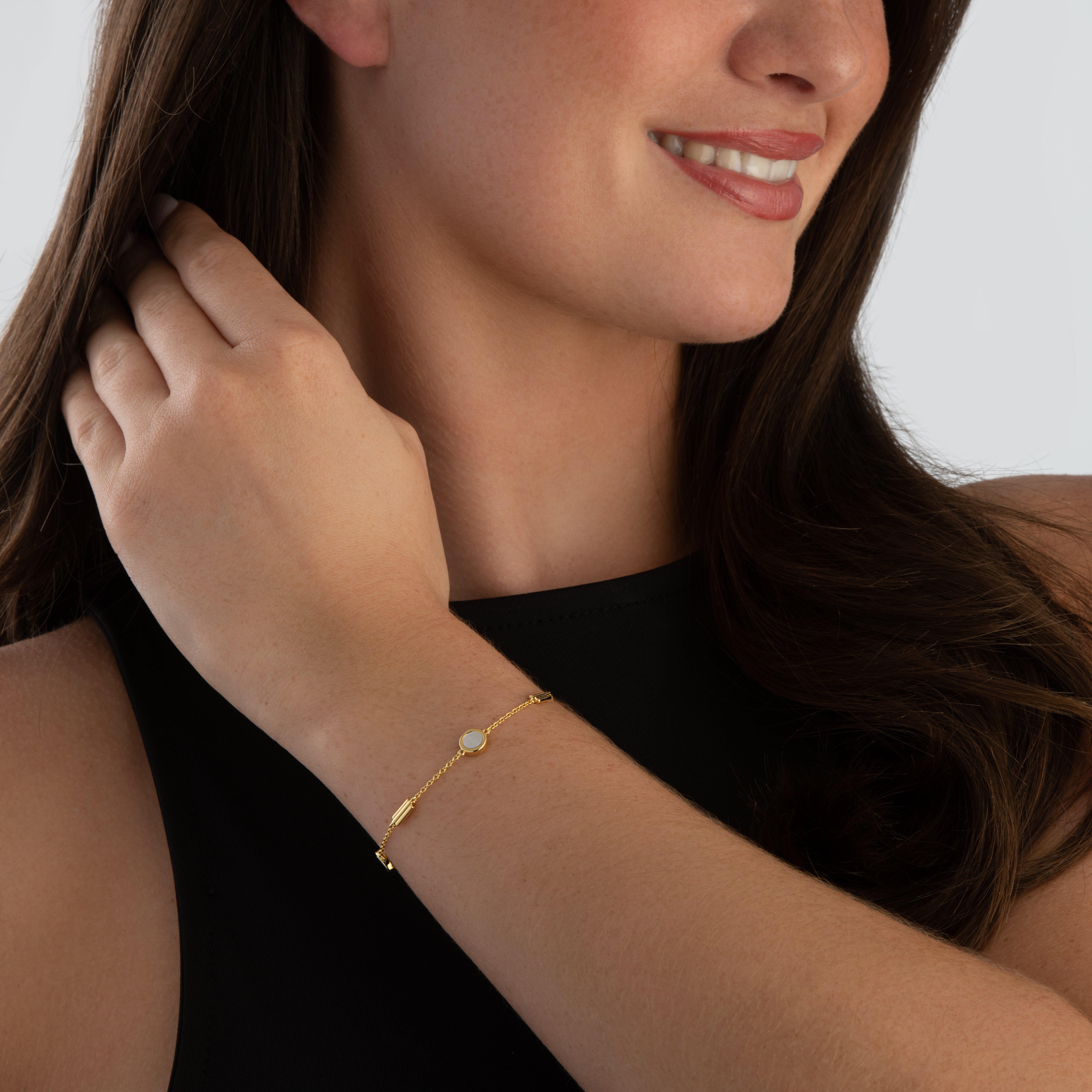 Crafted with an abundance of elegance and contemporary charm, this Astley Clarke Stilla 18ct Yellow Gold Vermeil Mother of Pearl Bracelet is the perfect accessory to bring your chic aesthetic to life.