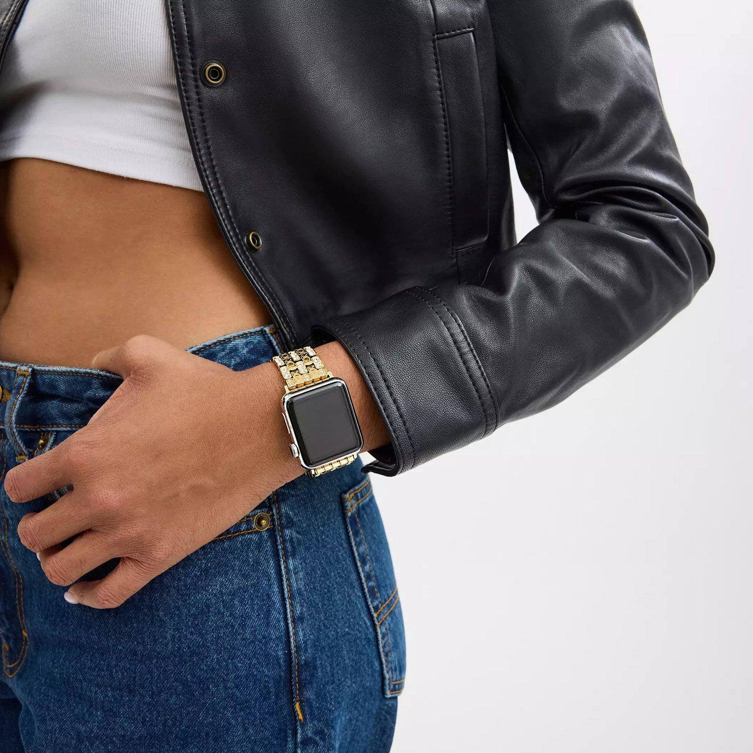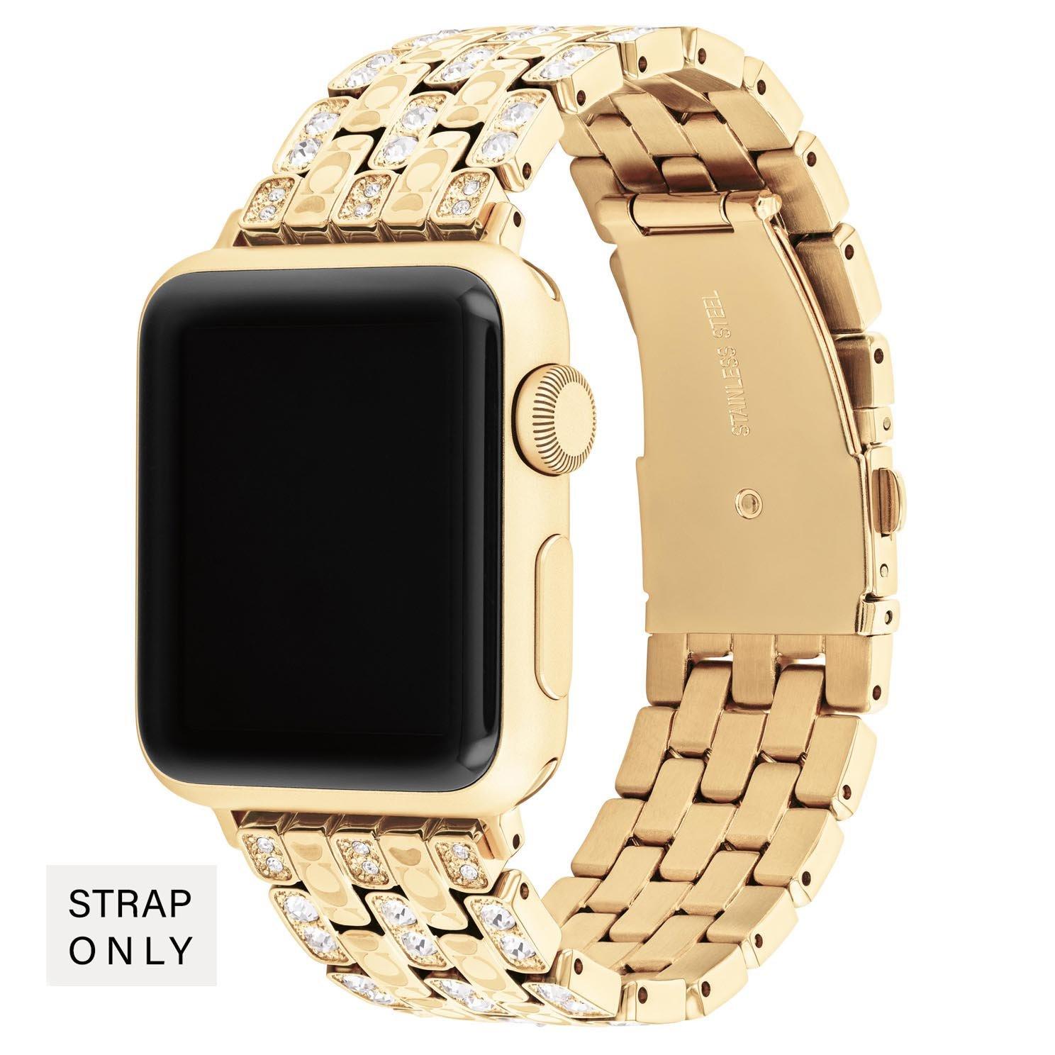 Add a sophisticated sparkle to your everyday with this Coach Yellow Gold Plated Crystal Apple Watch Strap, turning your smartwatch into a statement piece.