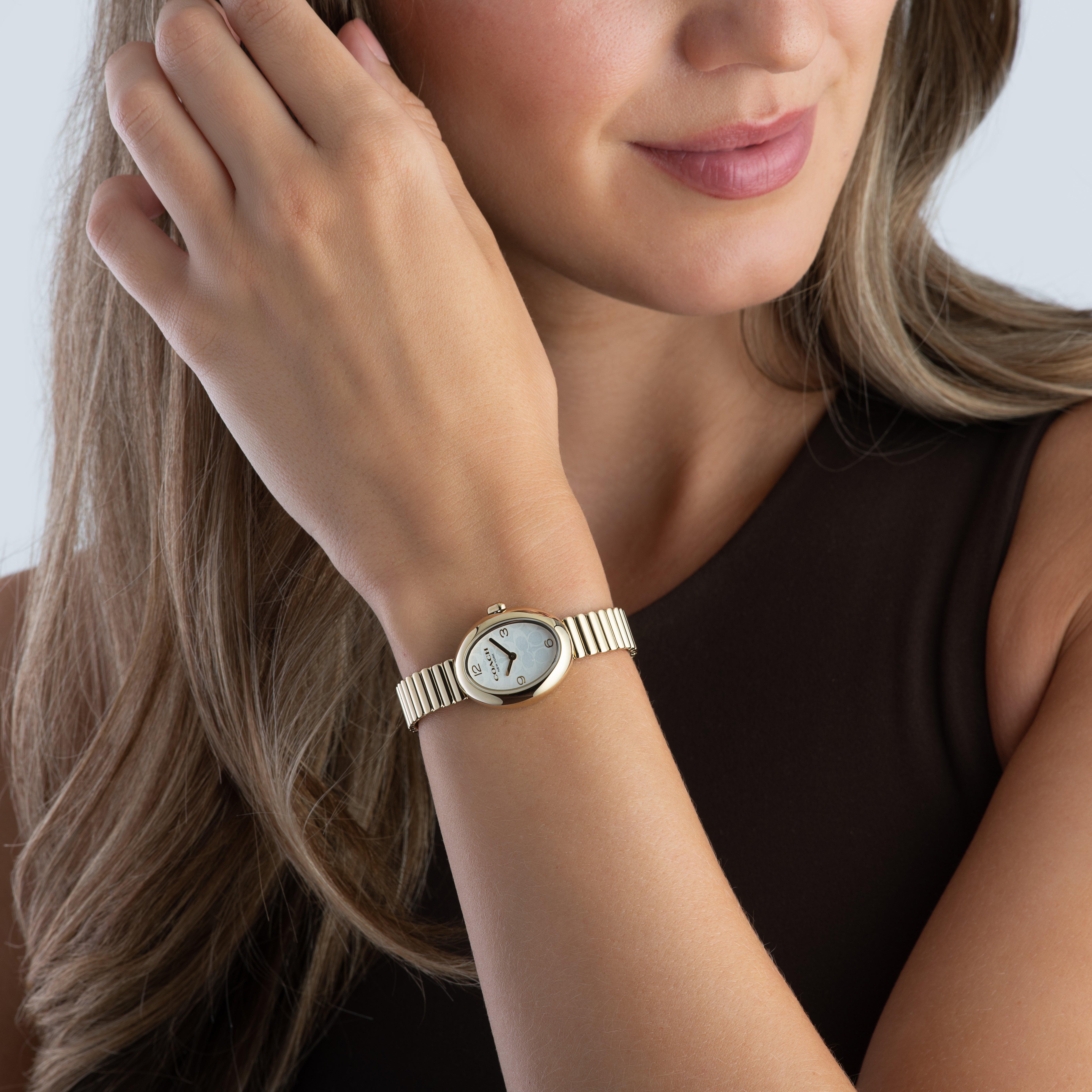 Infused with the brand’s iconic design, this Coach Sammy 22mm Yellow Gold Tone Ladies Watch seamlessly blends timeless craftsmanship with contemporary allure.