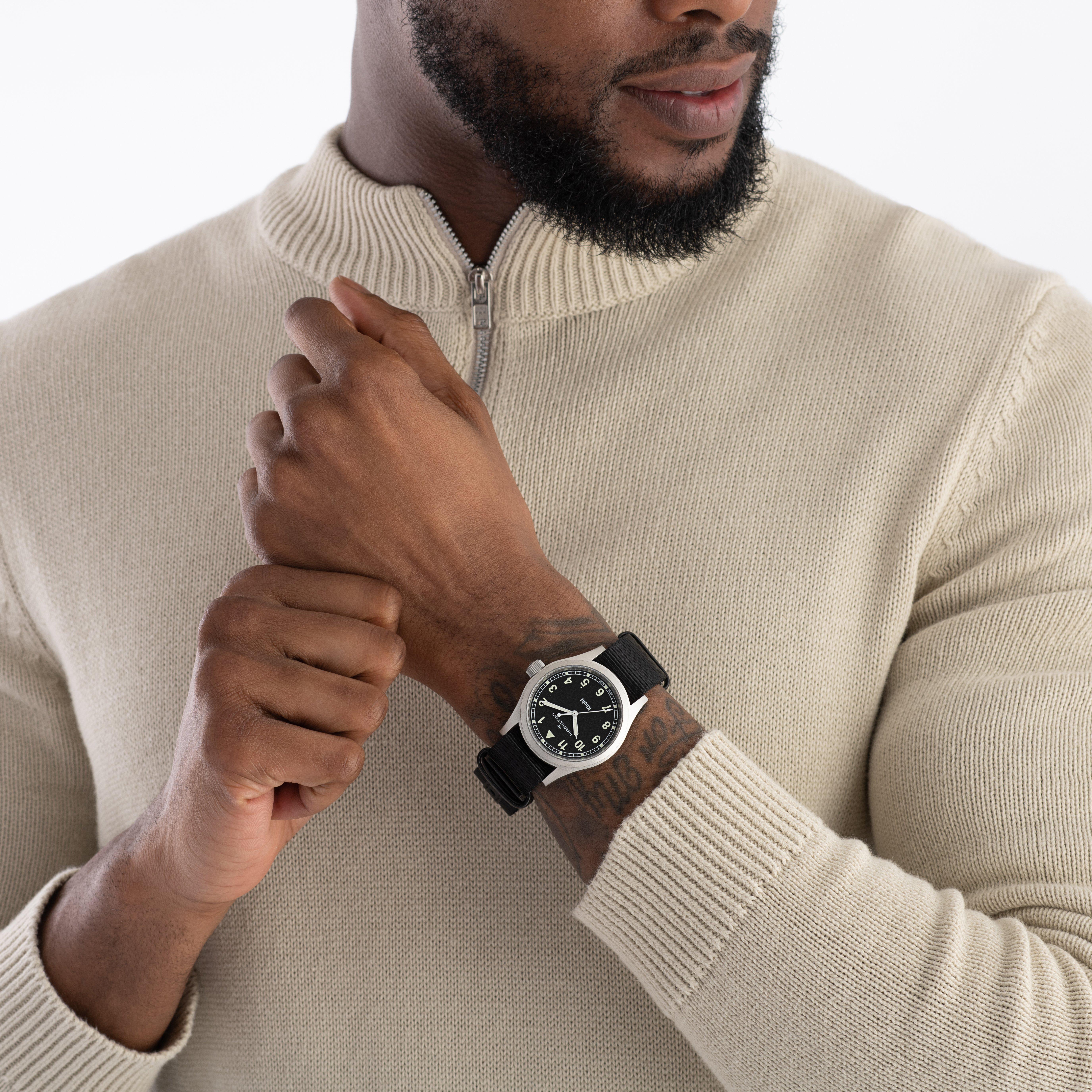 Showcasing the brand’s military heritage through simplistic and understated design, this Hamilton Khaki Field 38mm Watch is ready for your next adventure. Meticulously crafted with innovation and precision, this timepiece is a must-have for your watch collection.