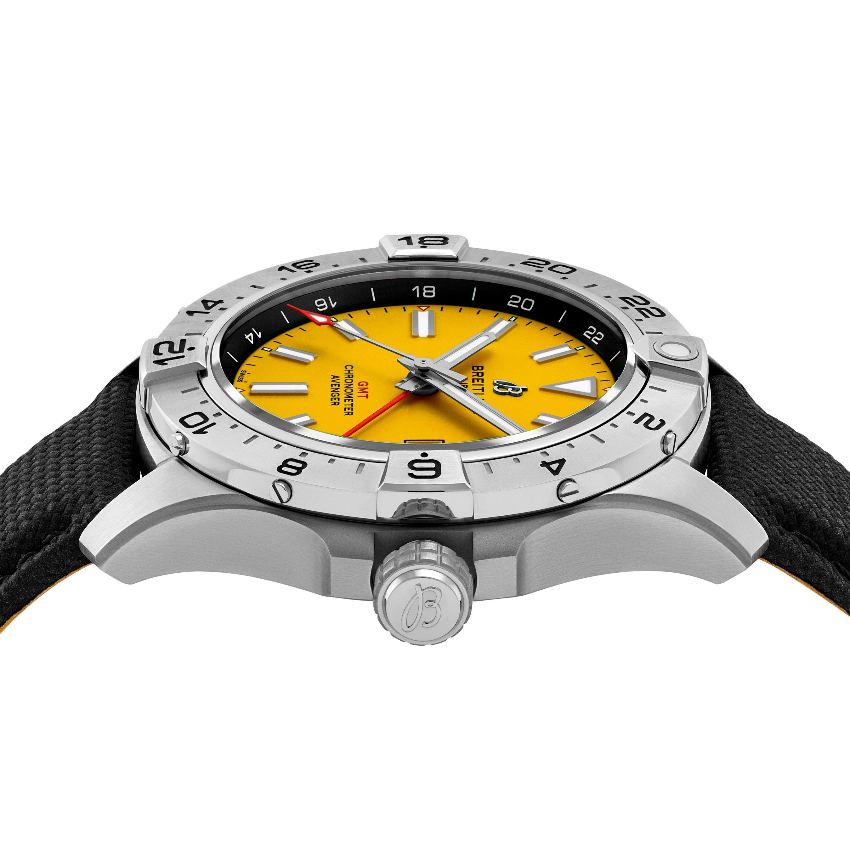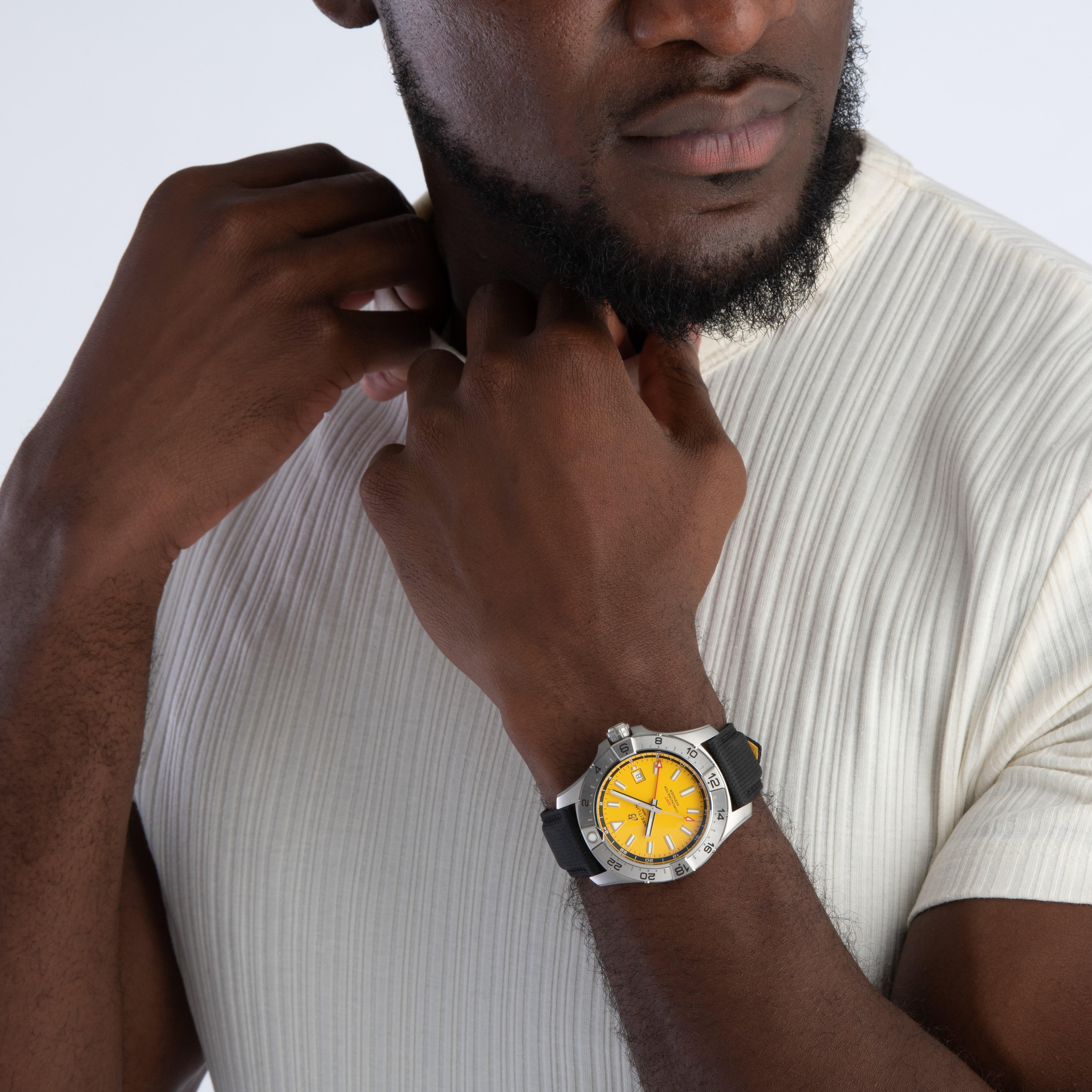 Exclusively created in collaboration with Breitling, celebrating our long-standing partnership of over 25 years, this Breitling Exclusive Avenger GMT 44mm Automatic Men’s Watch is a bold symbol of the brand's aviation heritage. Built with precision engineering and the iconic yellow dial, this worldwide exclusive is only available at Beaverbrooks.