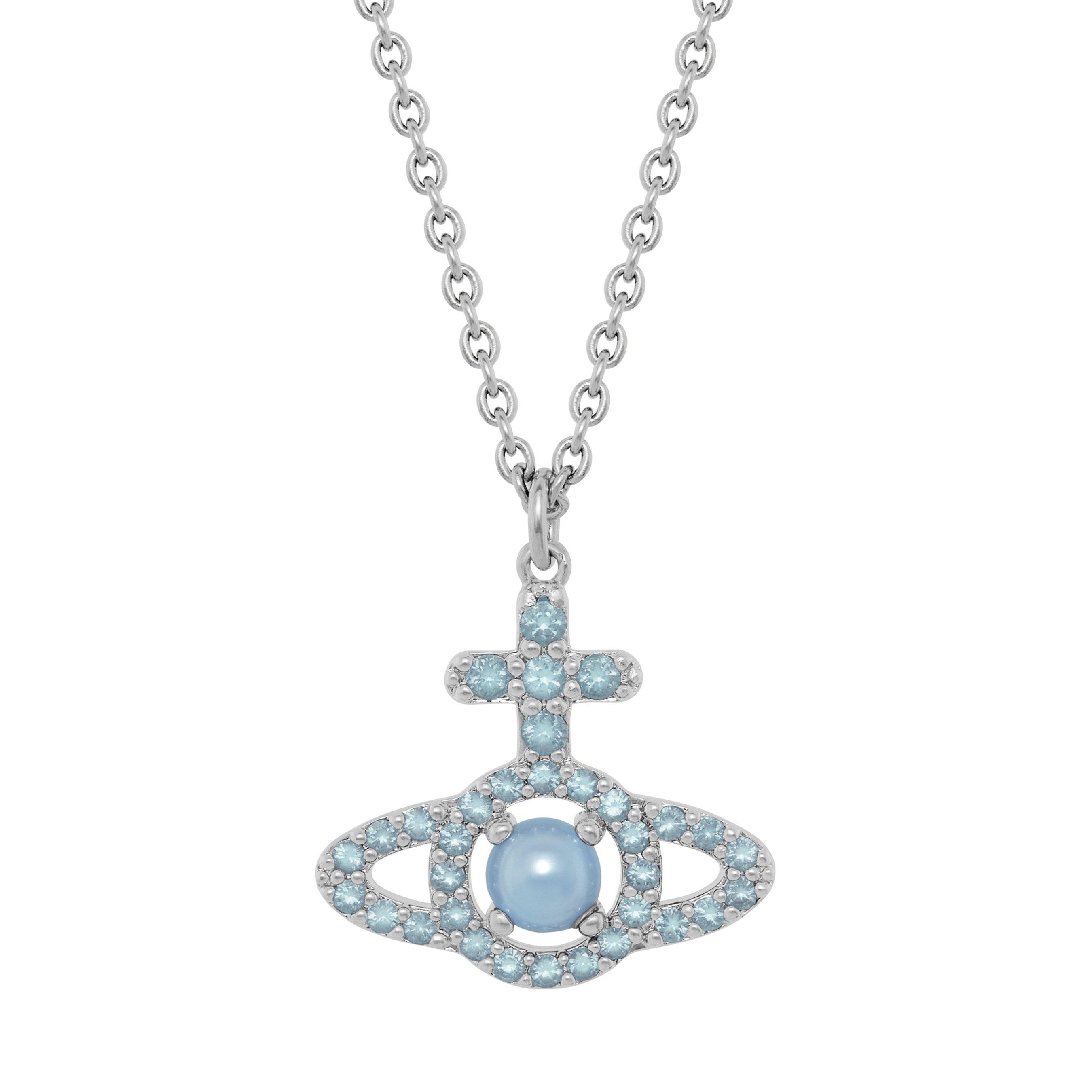 Make a statement with this Vivienne Westwood Olympia Silver Cubic Zirconia and Pearl Pendant, where iconic design meets exquisite detailing. Featuring the signature orb motif, elegantly adorned with sparkling blue cubic zirconia and centred with a lustrous glass-based pearl for a pop of colour, this pendant embodies Vivienne Westwood’s signature blend of rebellious spirit and timeless elegance.