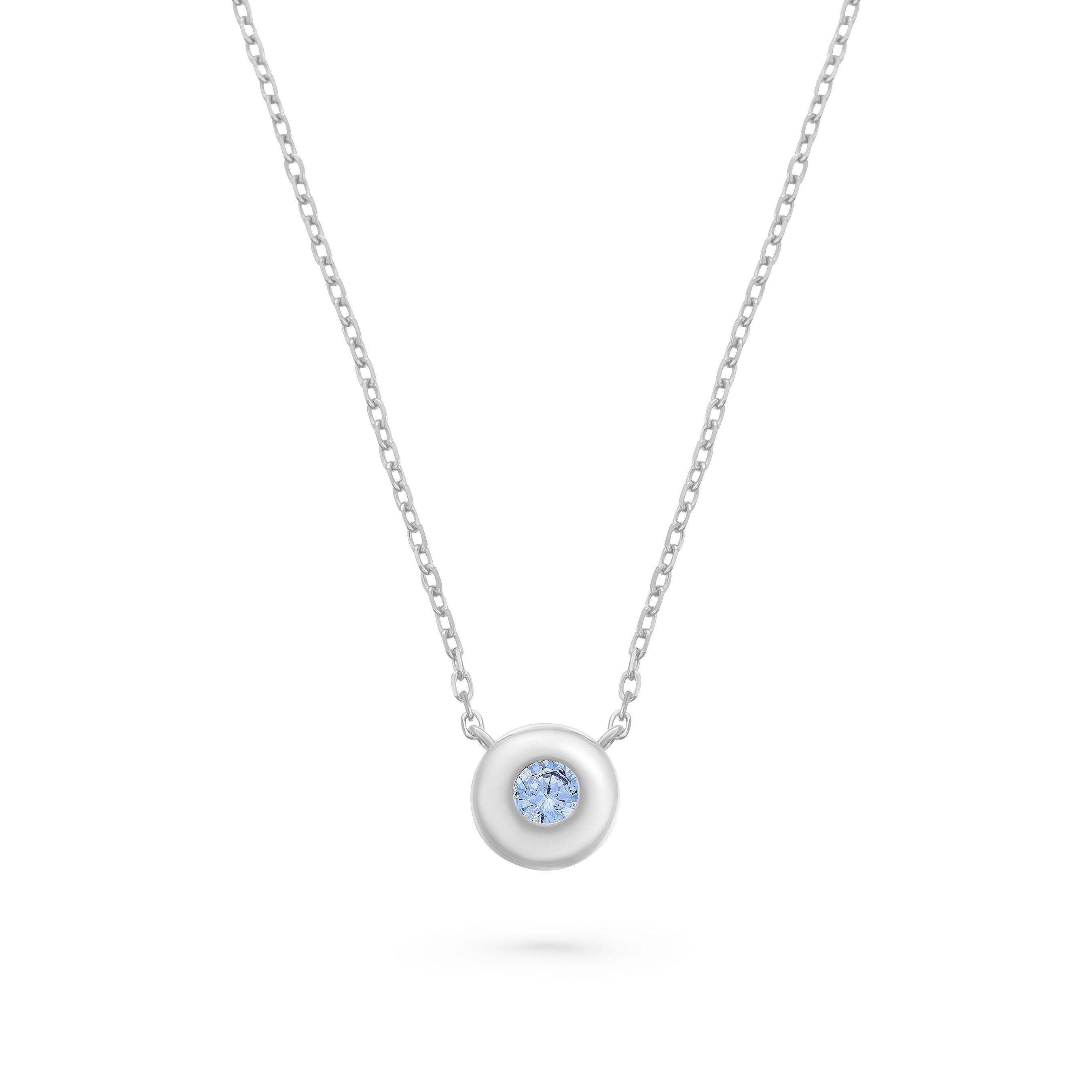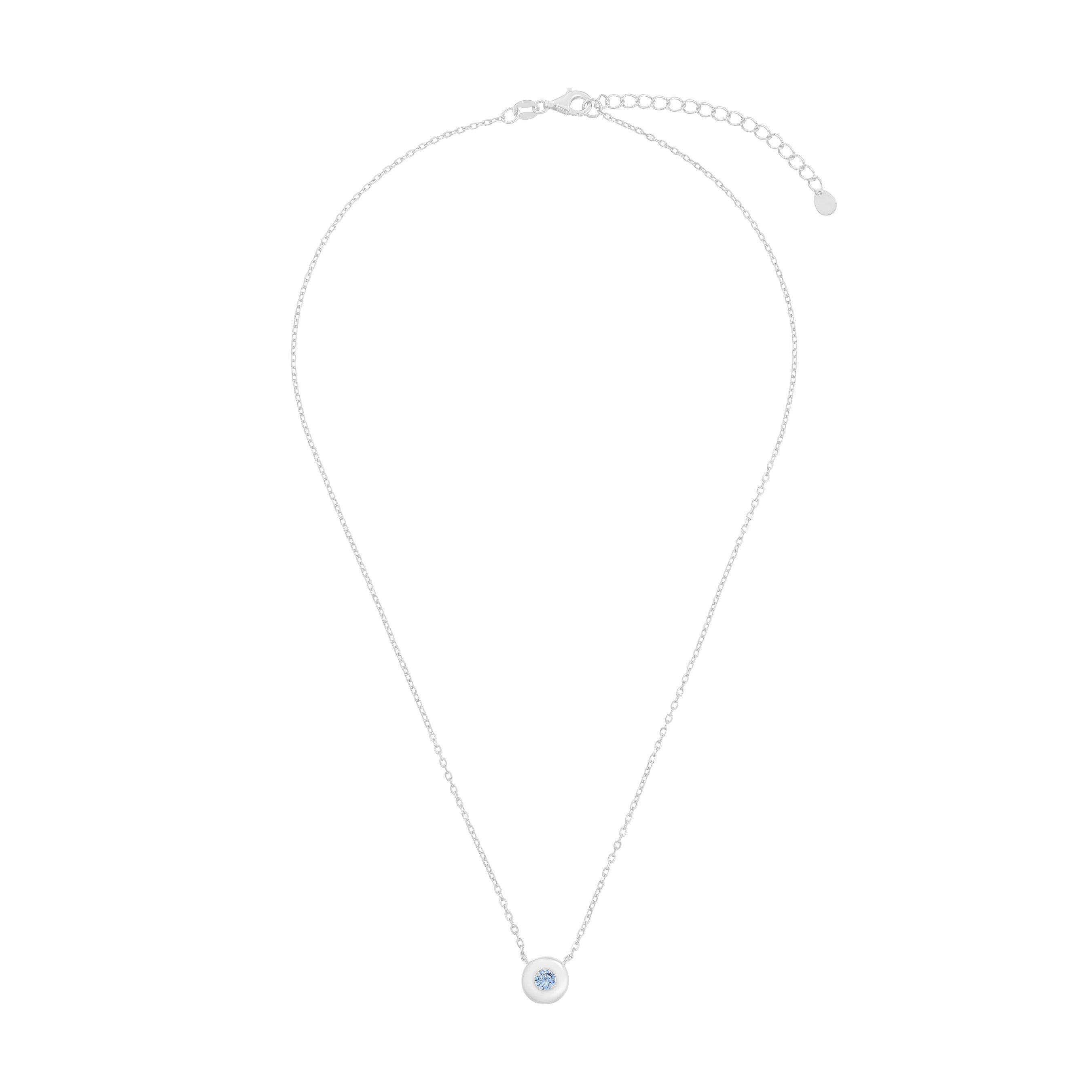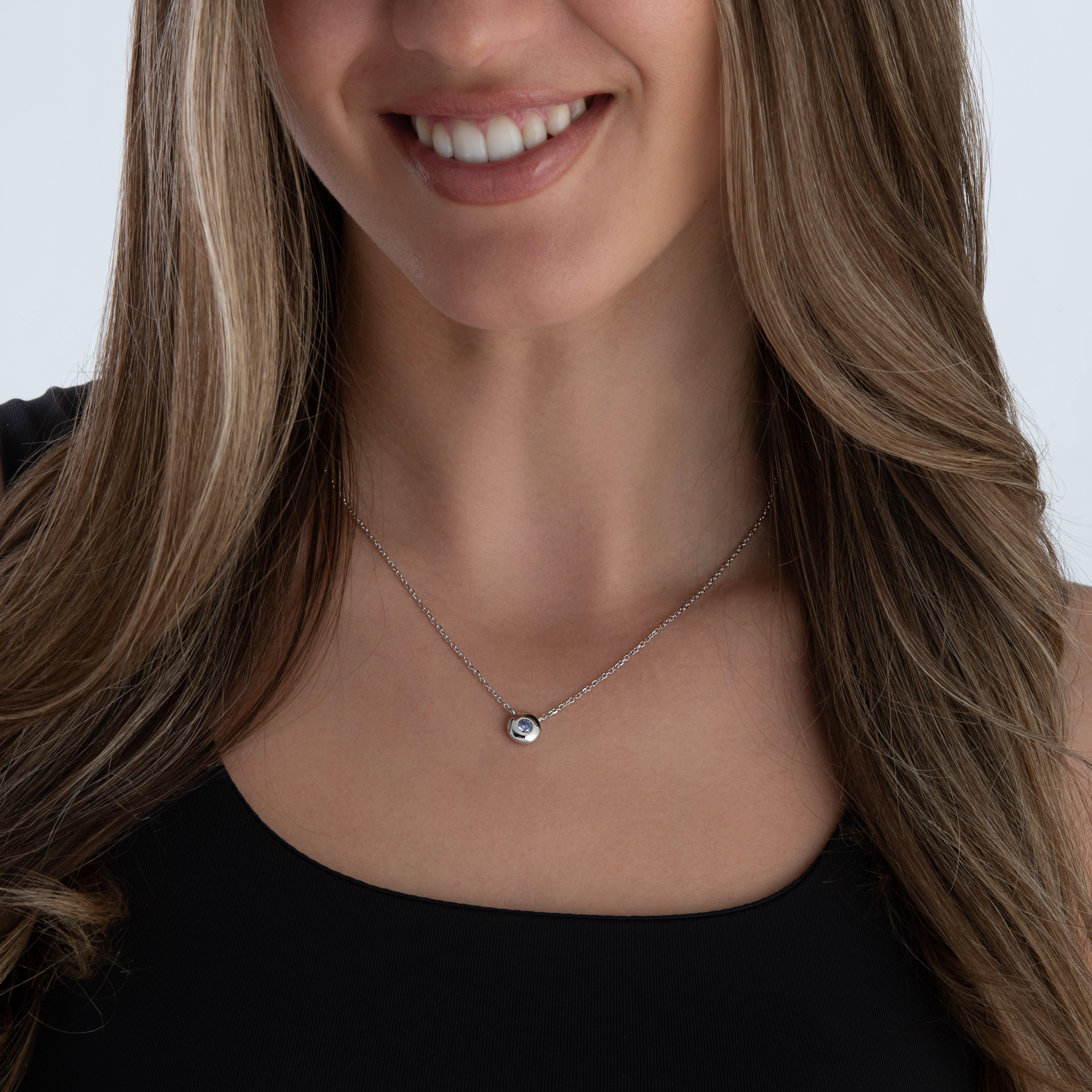 Inspired by December’s captivating birthstone, this Silver Cubic Zirconia December Birthstone Necklace features a sparkling blue cubic zirconia that catches the light with every movement. Its polished silver setting enhances the cubic zirconia’s brilliance, making it a sophisticated addition to any outfit.