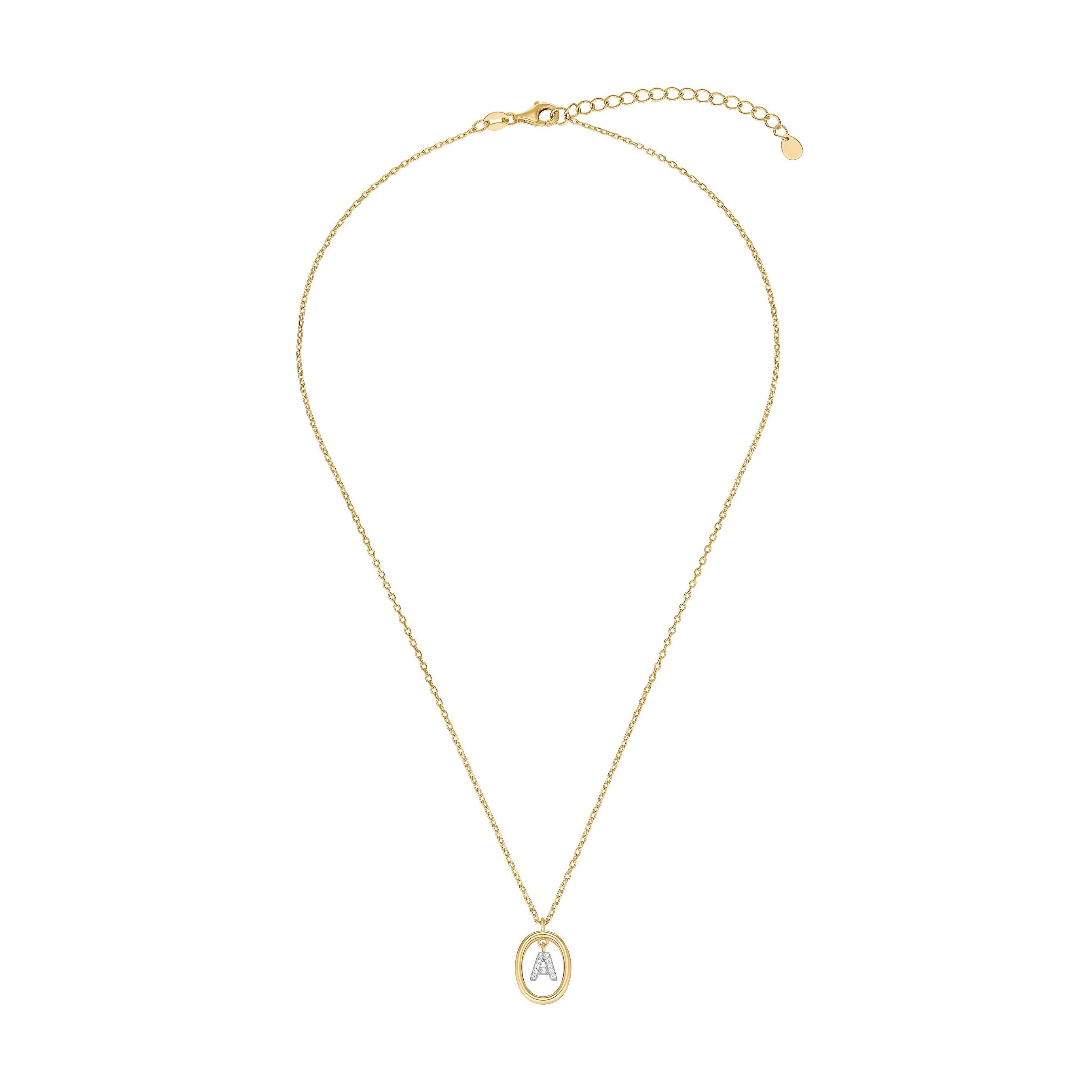 Taking sentiment to new heights of elegance, this Yellow Gold Plated Cubic Zirconia Initial A Pendant is a thoughtful gift for that special someone in your life. Crafted with cubic zirconia crystals, the initial is framed by an oval of yellow gold that will make a statement of style wherever you go.