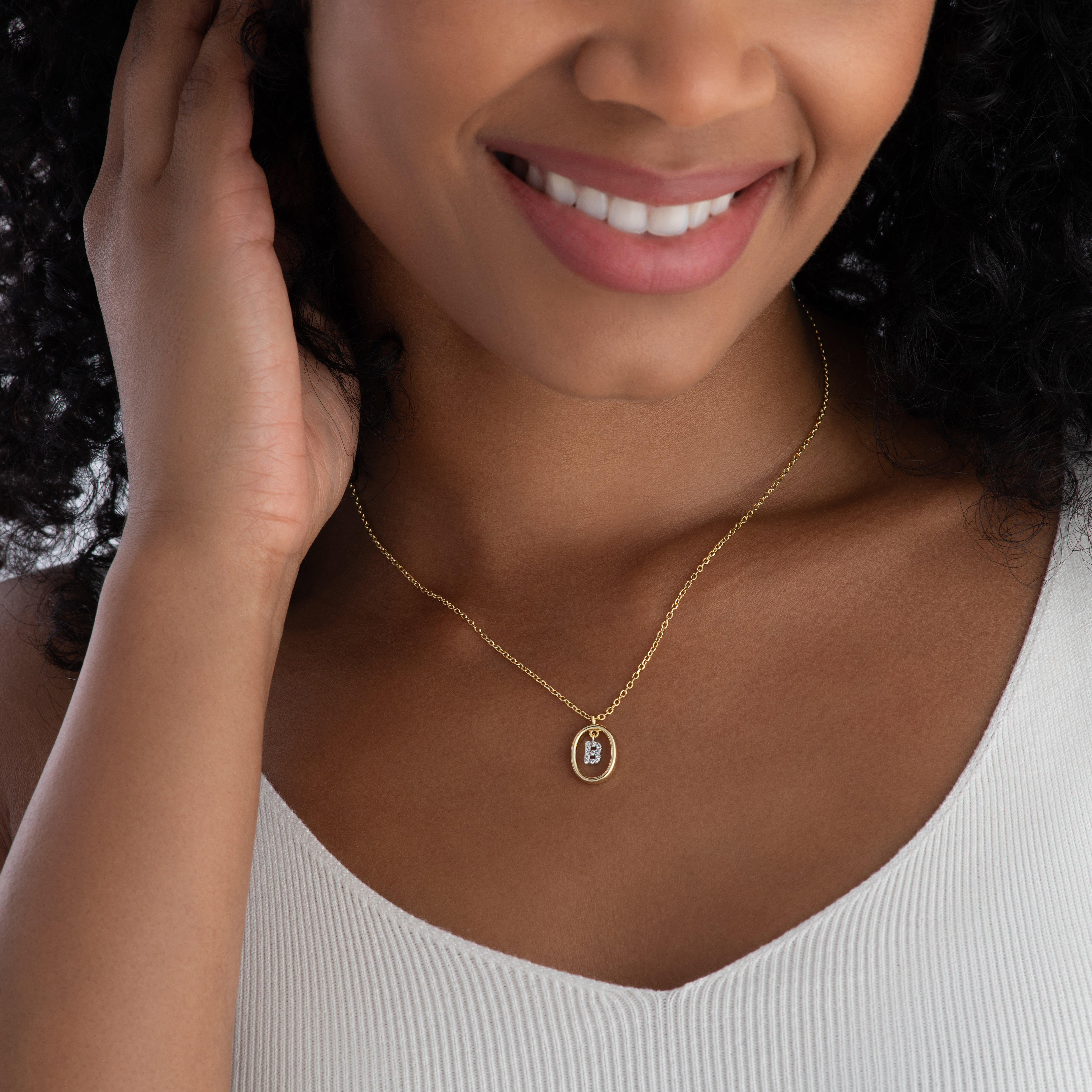 Yellow Gold Plated Cubic Zirconia Initial B Pendant