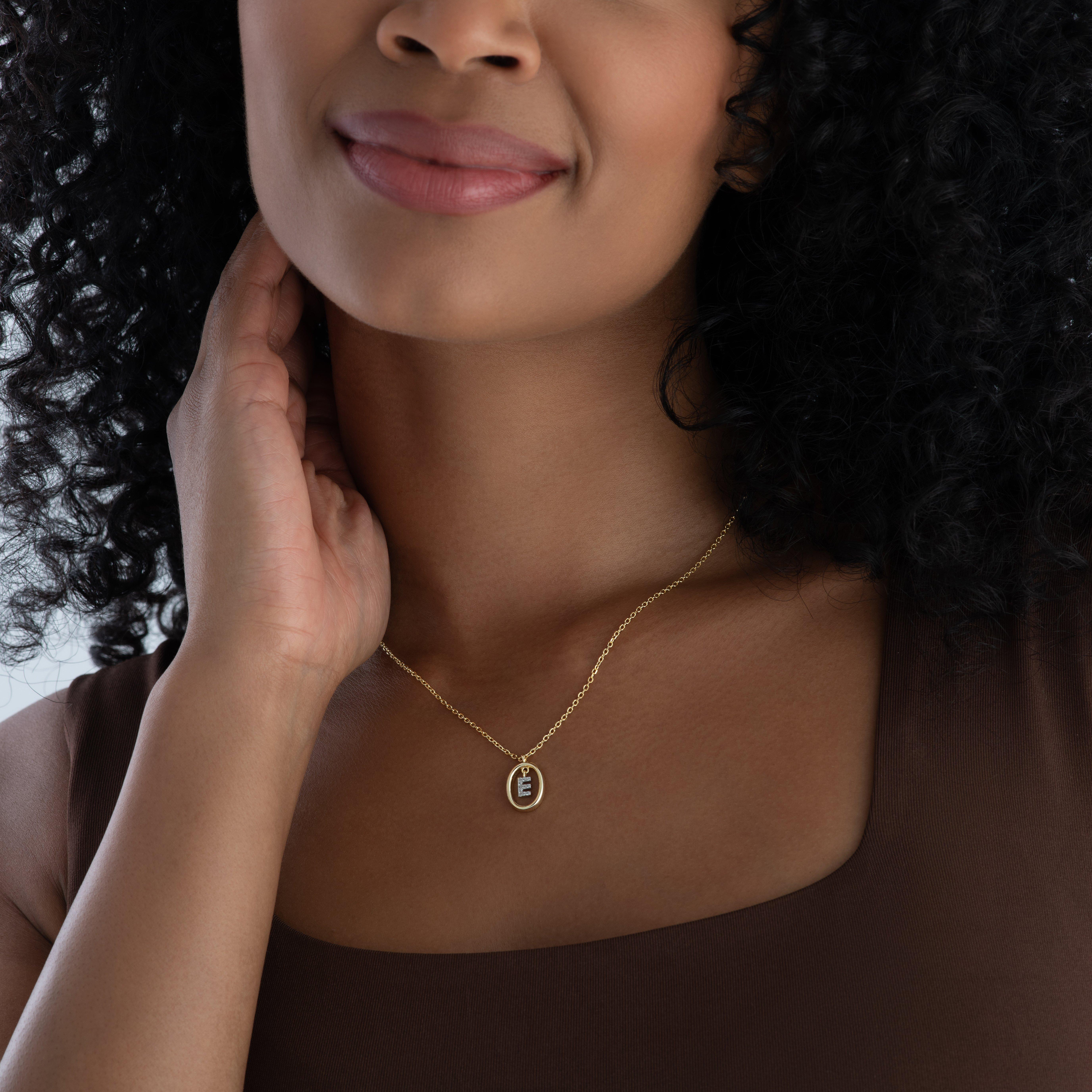 Yellow Gold Plated Cubic Zirconia Initial E Pendant