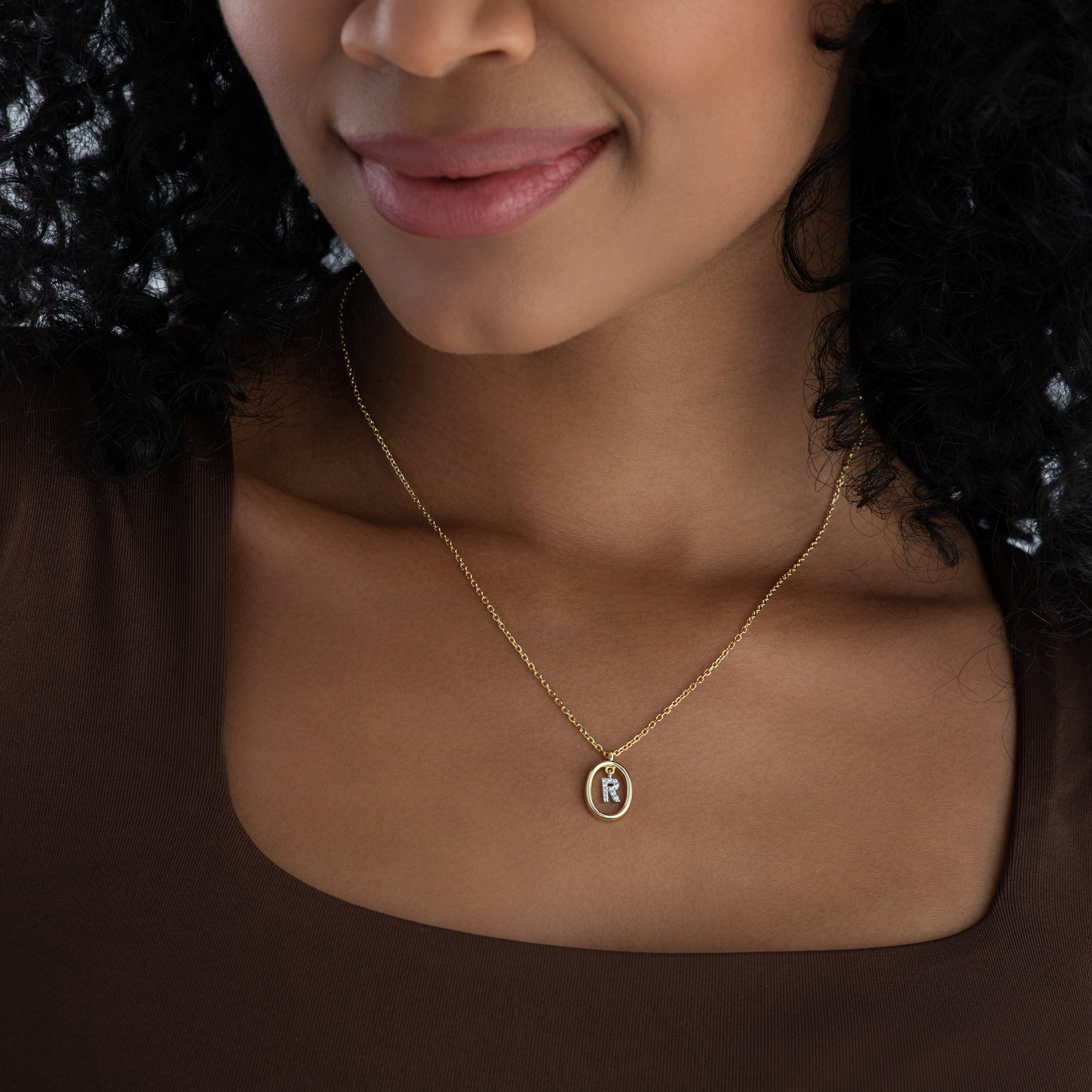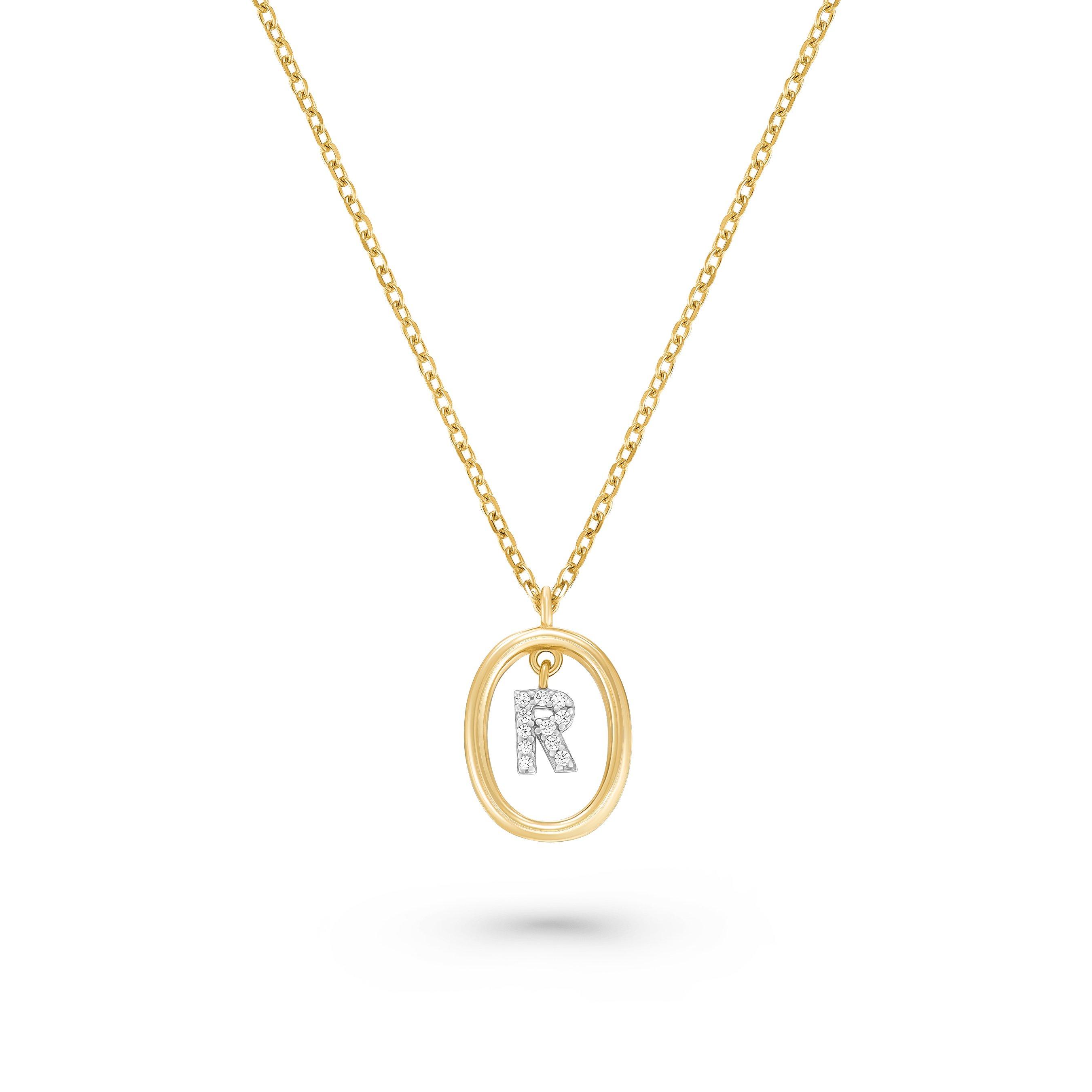 Yellow Gold Plated Cubic Zirconia Initial R Pendant