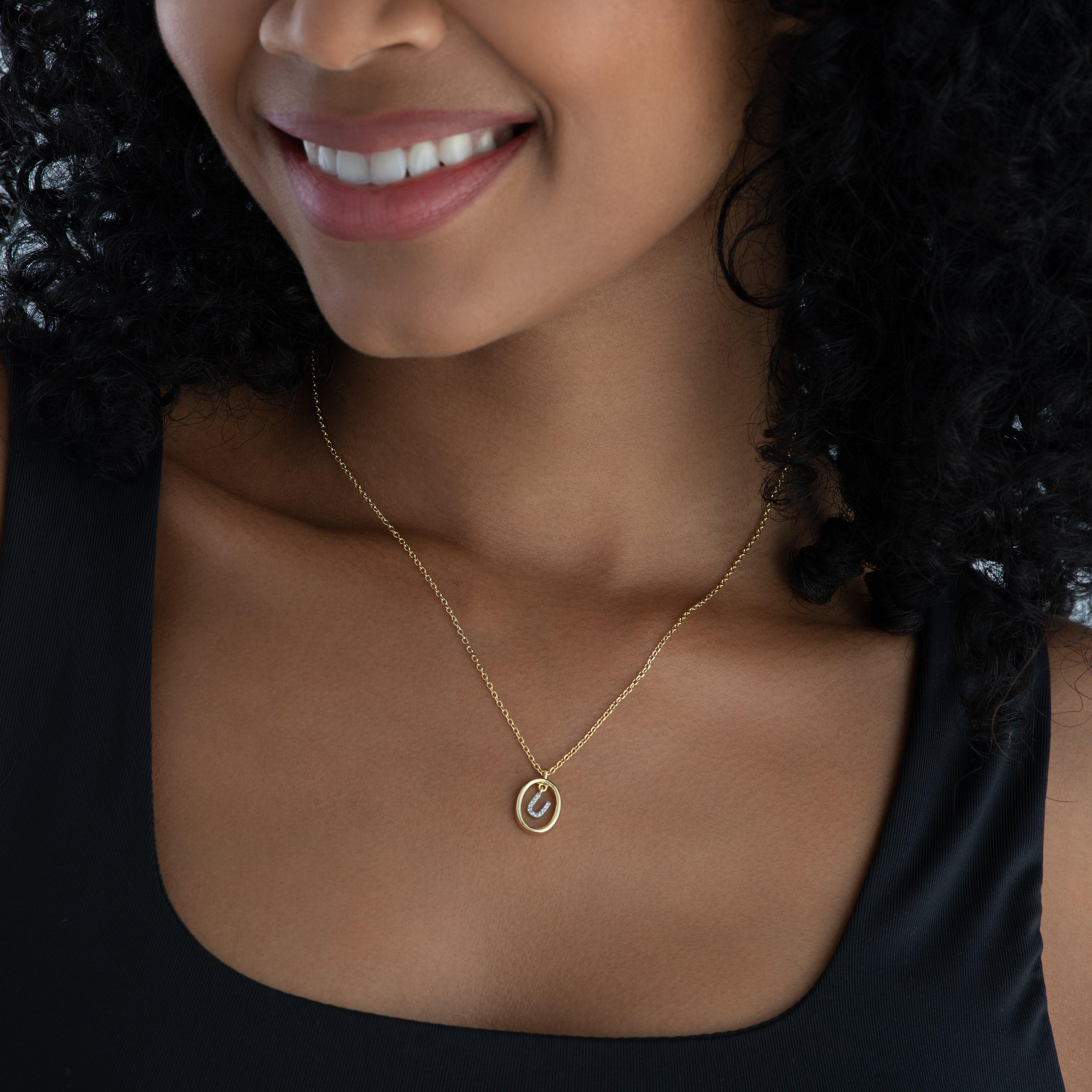 Adorn your neckline with a unique sparkle with this Yellow Gold Plated Cubic Zirconia Initial U Pendant. Embellished with cubic zirconia crystals that reflect the light beautifully, this pendant is makes a thoughtful gift for a loved one or a well-deserved treat from you to you. Secured with a lobster clasp to keep your pendant in place no matter what the occasion.