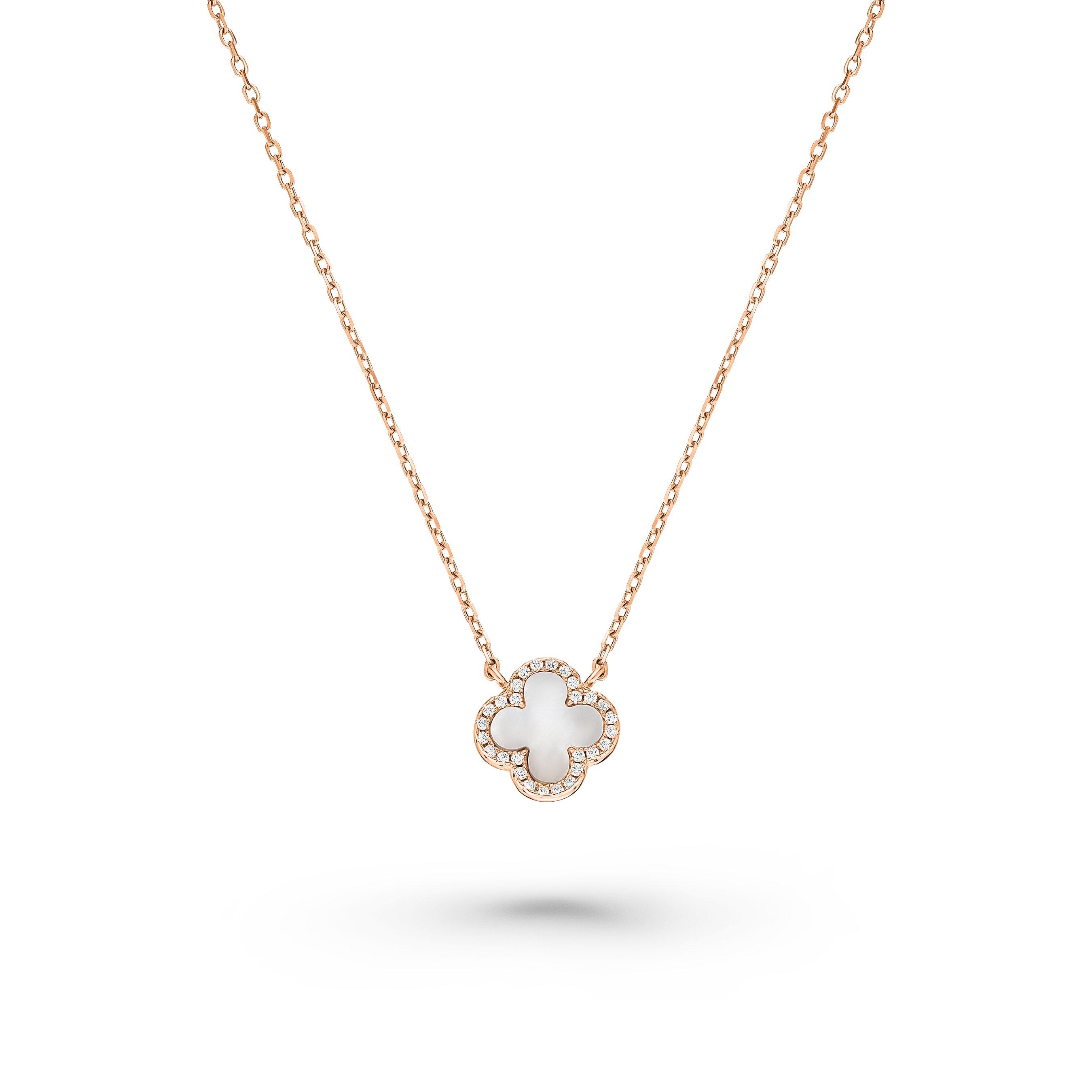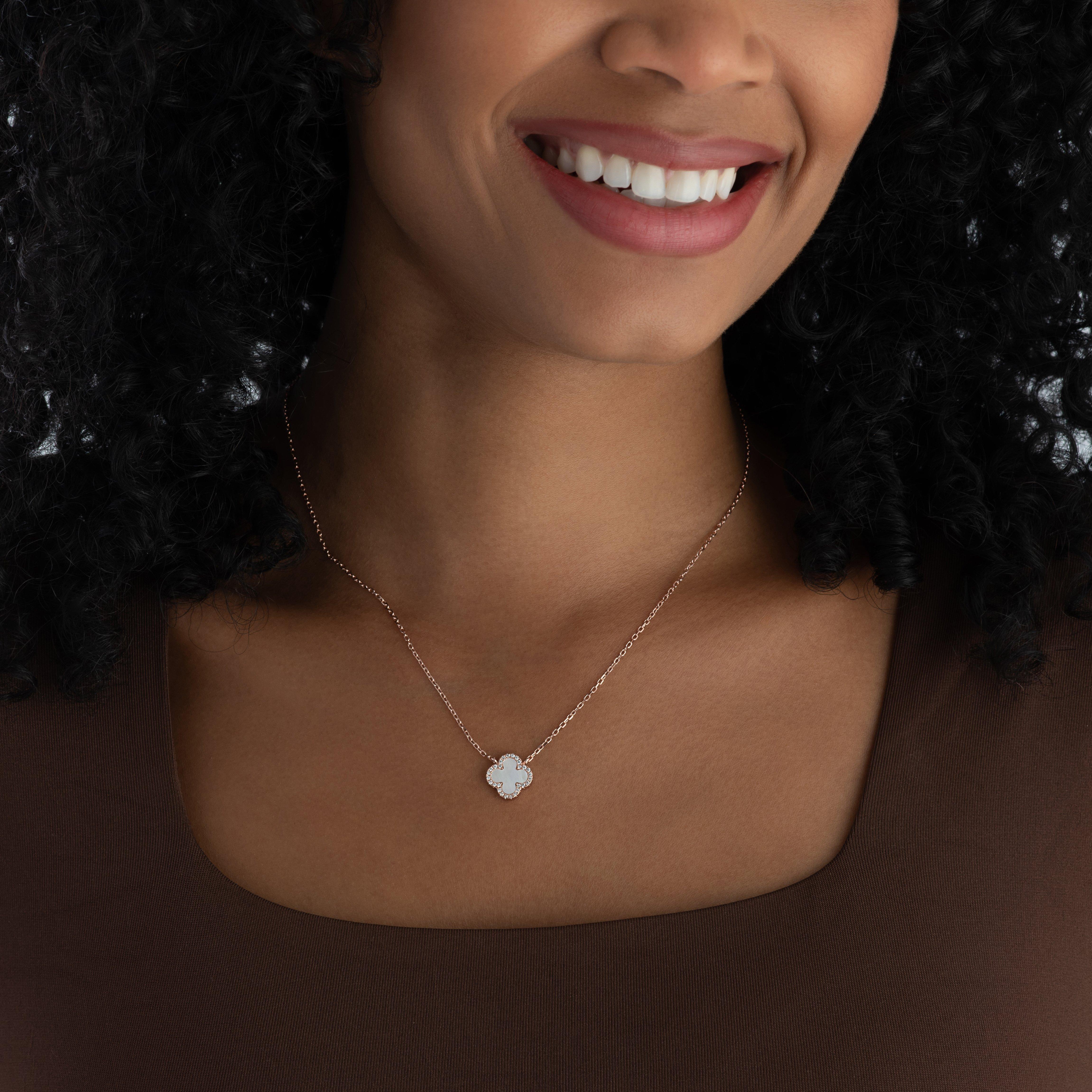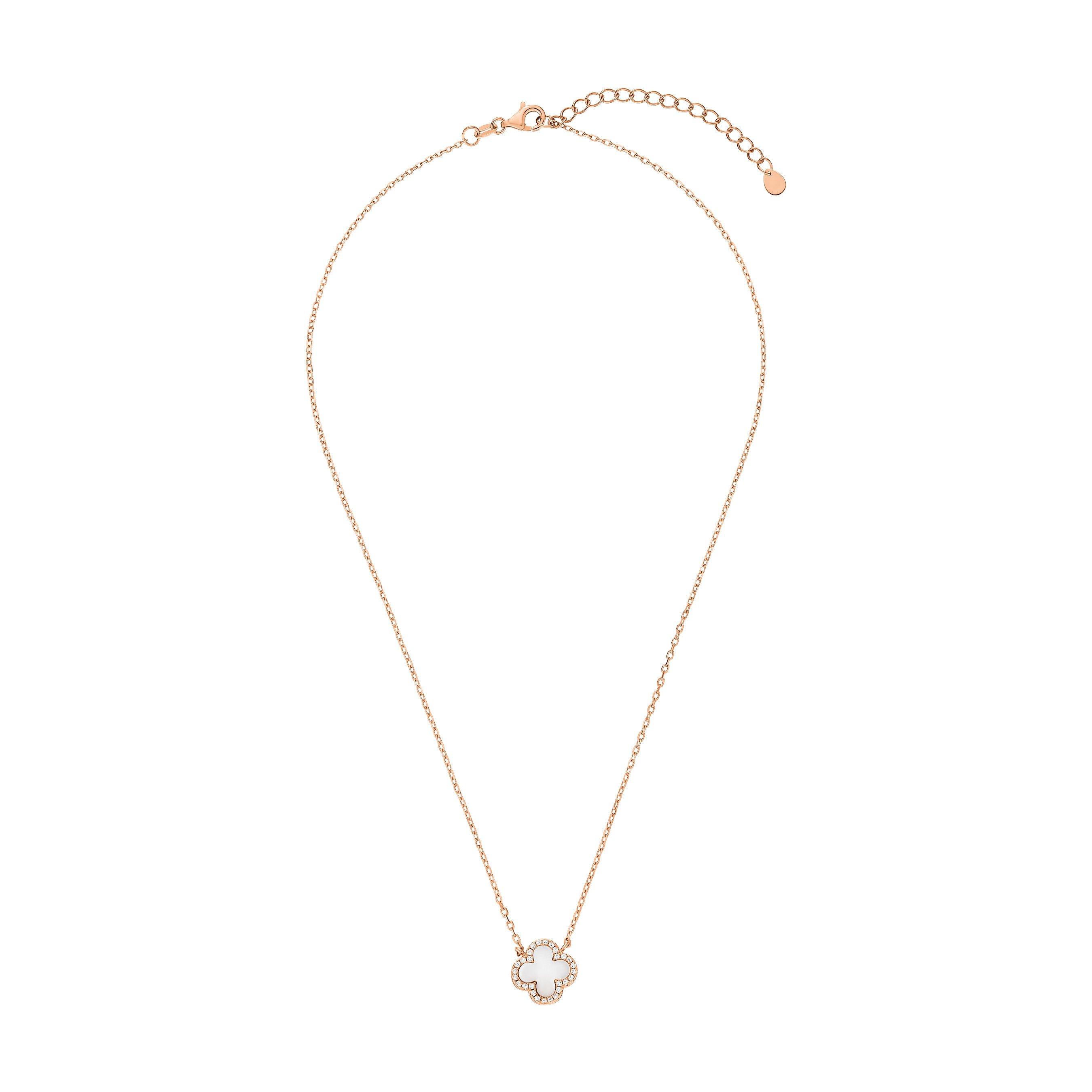 Rose Gold Plated Mother of Pearl Cubic Zirconia Clover Necklace
