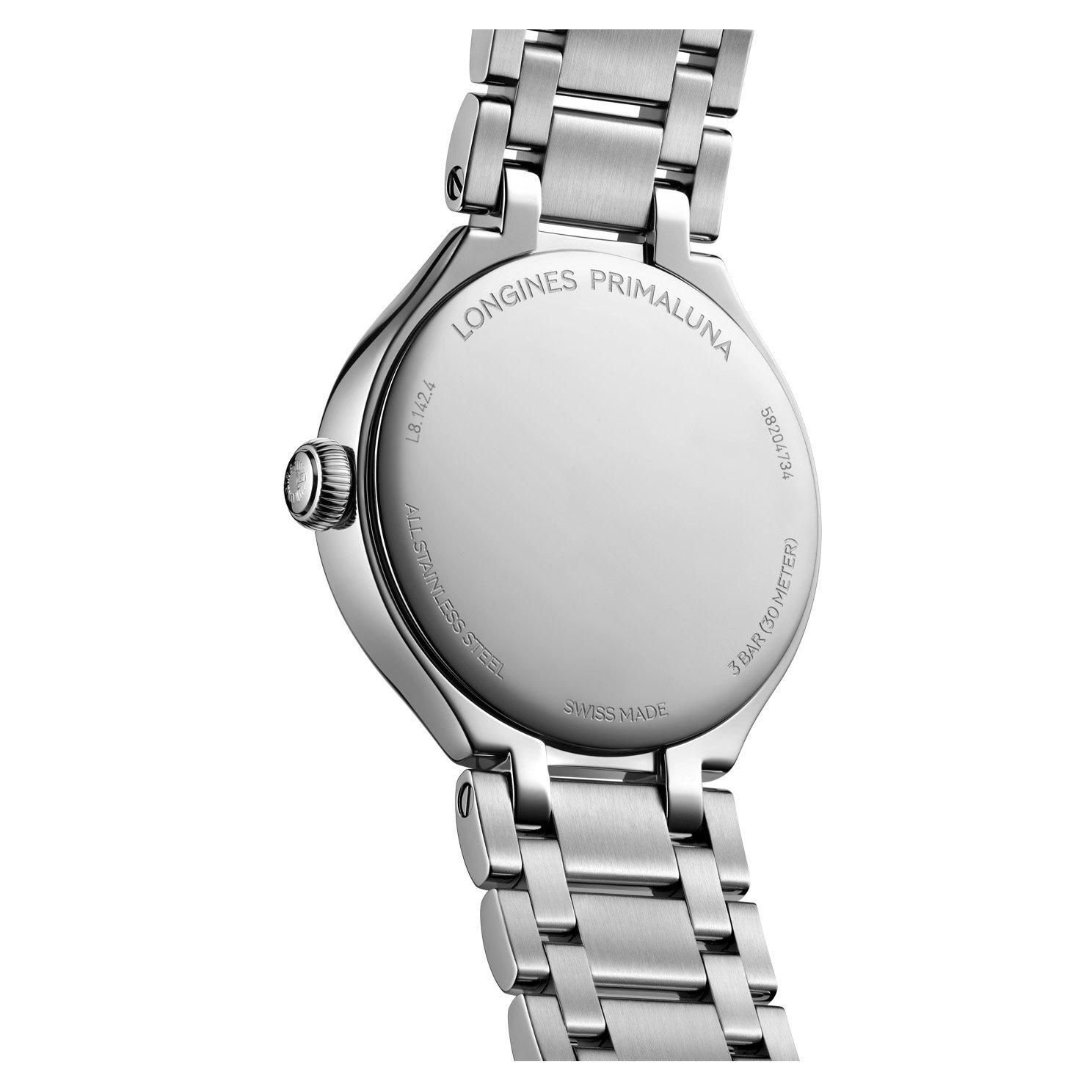 A harmonious blend of refined luxury and technical mastery, this Longines Primaluna 30mm Diamond Ladies Watch is a celebration of light and grace. Its delicate round case and shimmering diamond hour markers reflect your inner elegance, while the quartz movement ensures precision in every moment.
