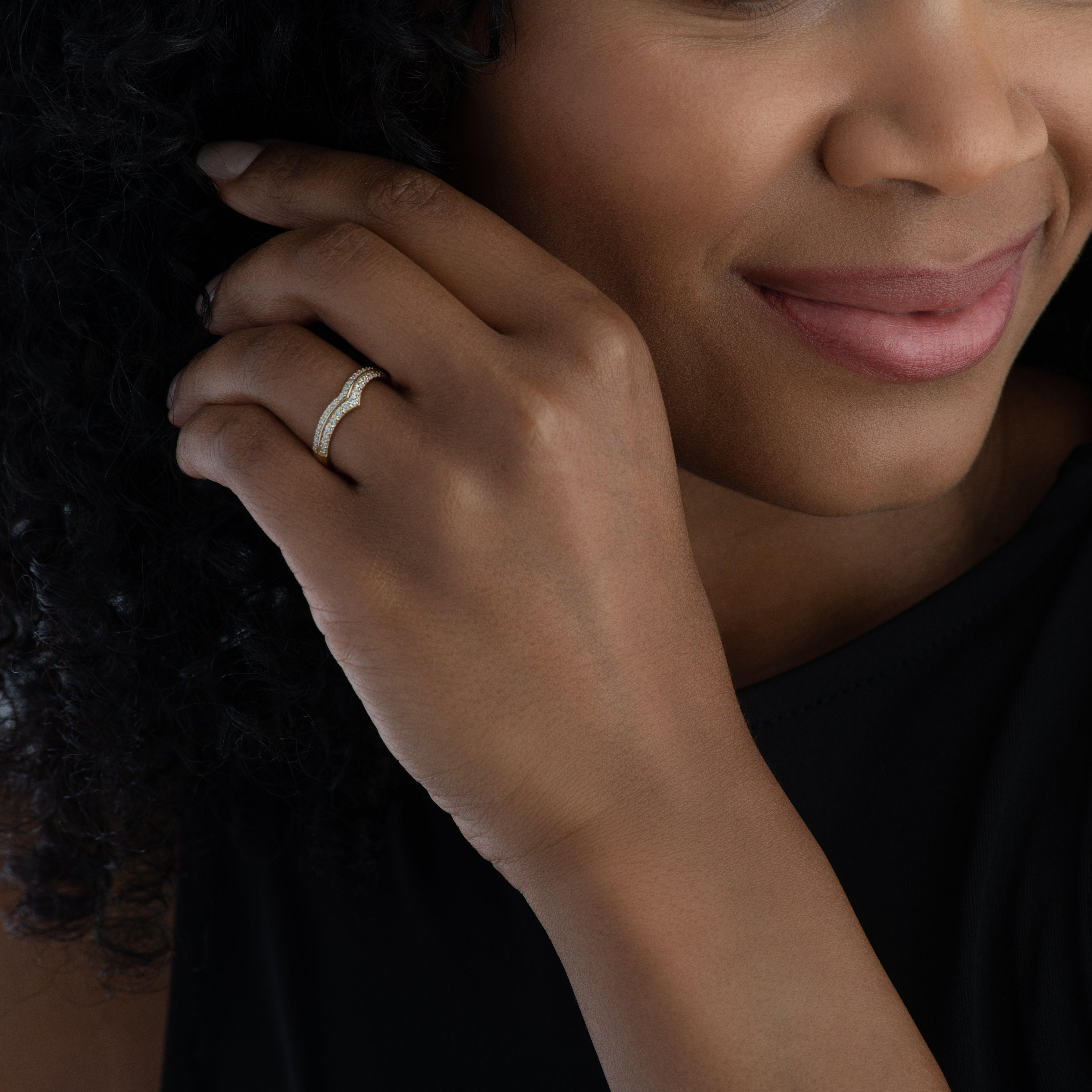 Celebrate your forever with this 9ct Yellow Gold Diamond Wedding Ring, thoughtfully sculpted to embrace and enhance your engagement ring. Sparkling with expertly set round brilliant diamonds that catch the light with every movement and radiating a flawless blend of craftsmanship and elegance.