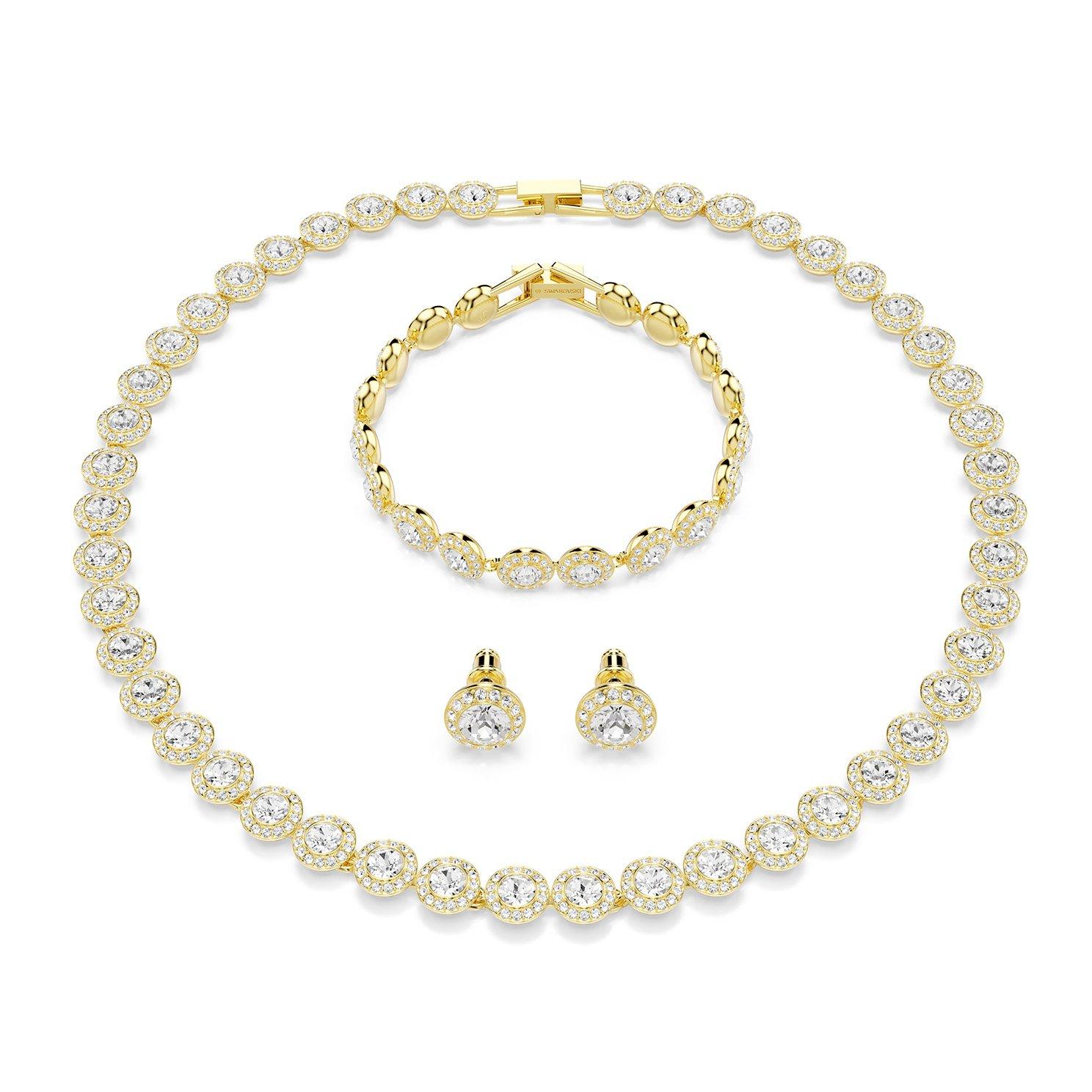 Swarovski Una Angelic Yellow Gold Tone Crystal Necklace, Bracelet and Earrings Set