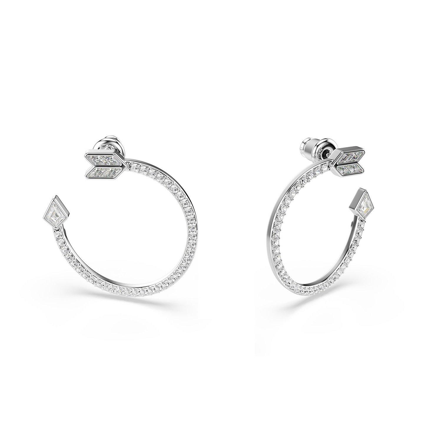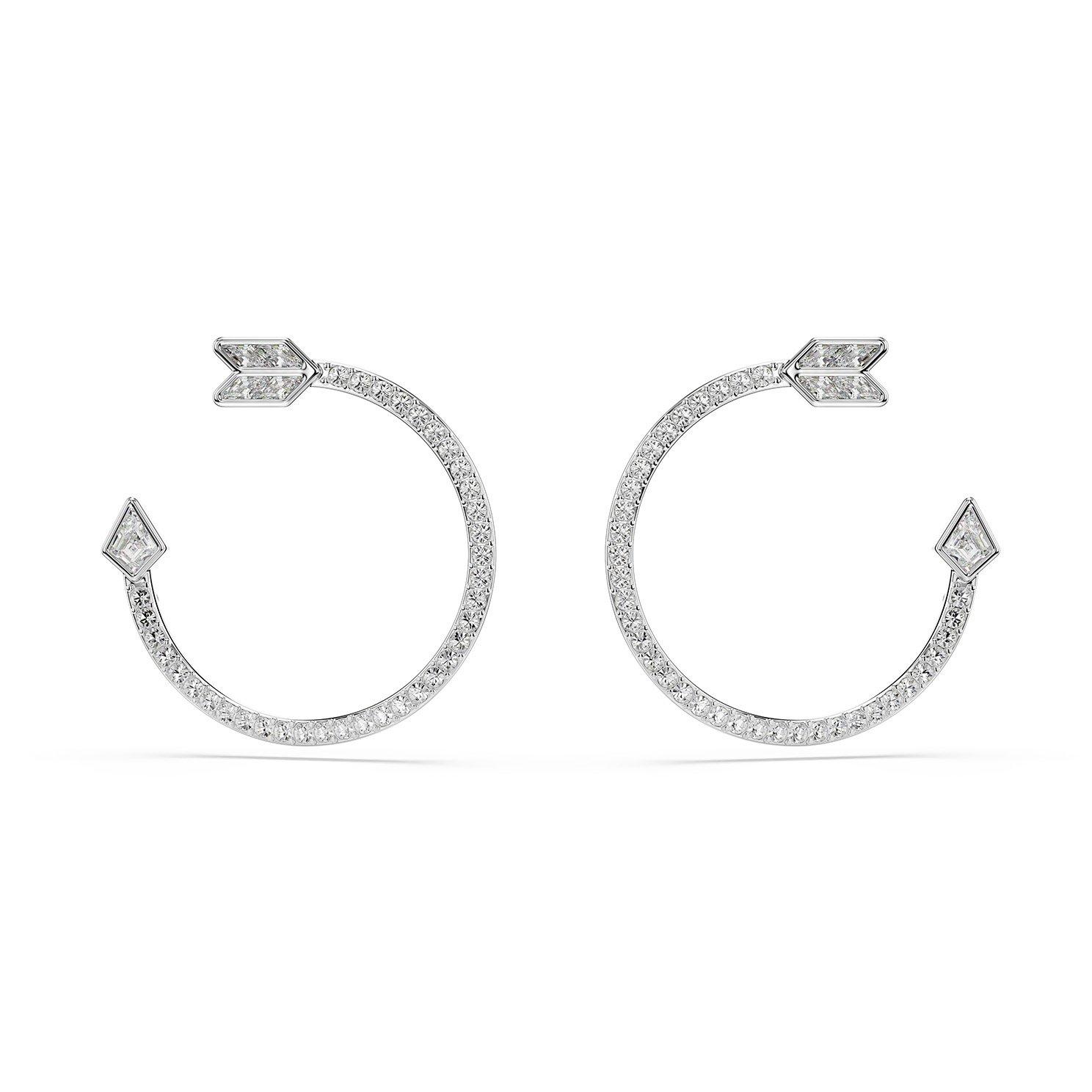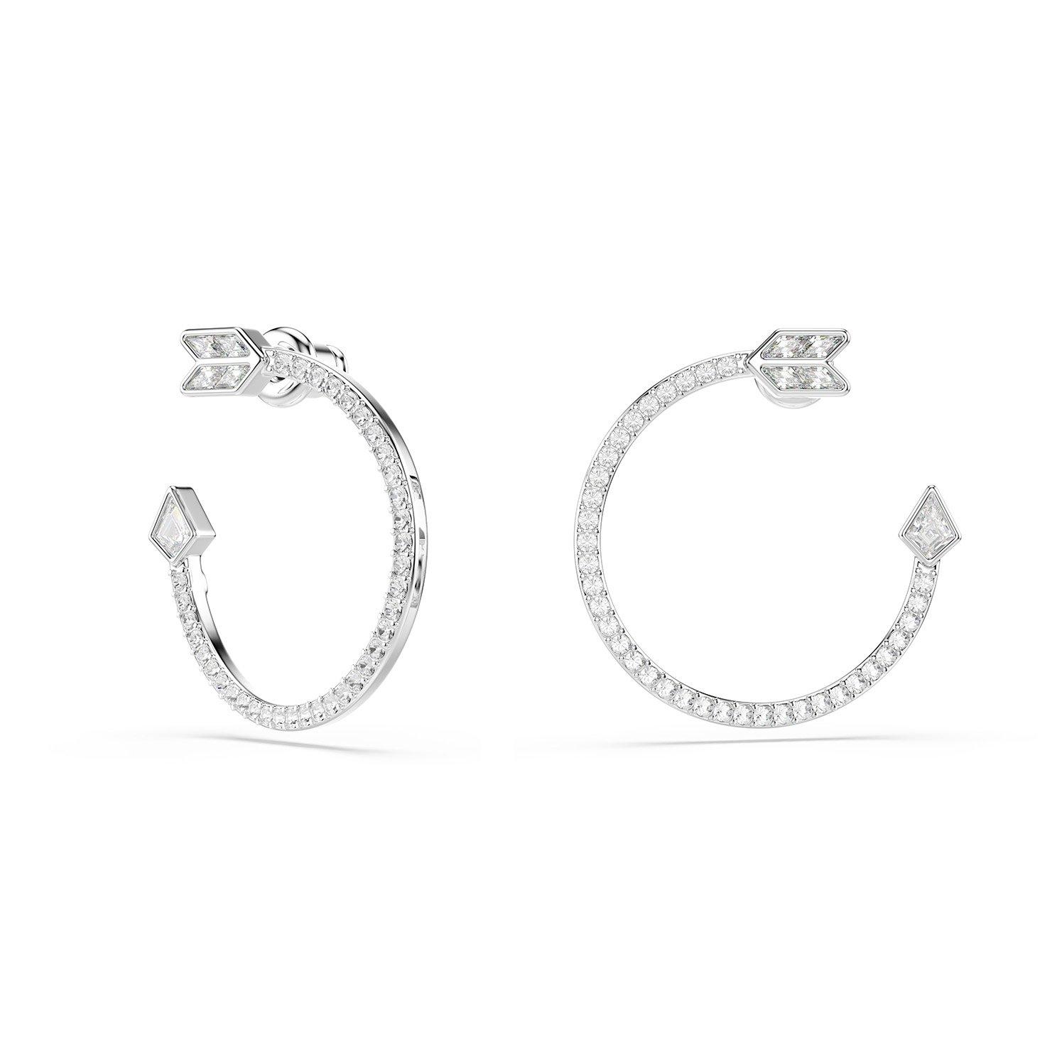 Swarovski Idyllia White Gold Tone Crystal Arrow Hoop Earrings