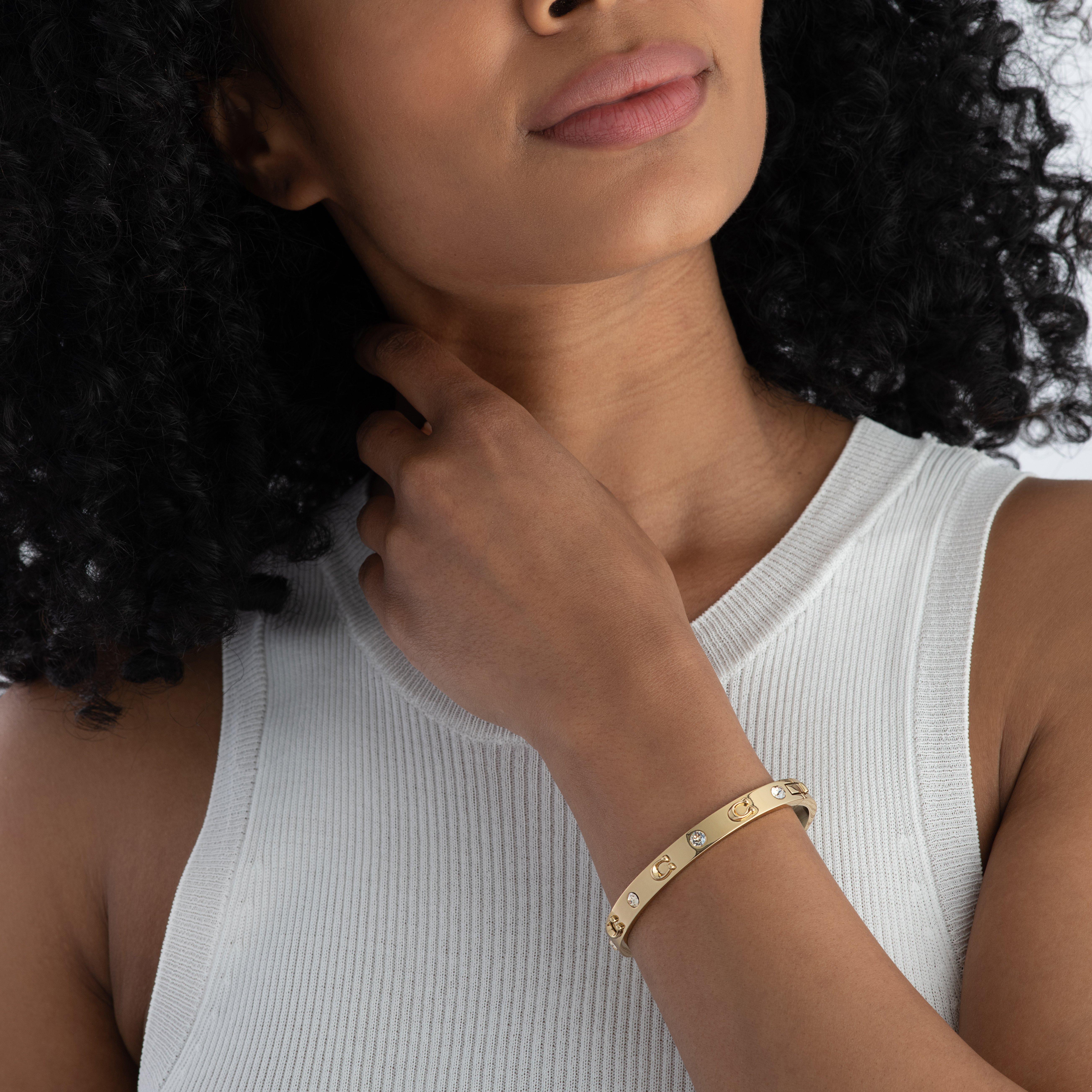 Coach Signature C Yellow Gold Tone Cubic Zirconia Bangle