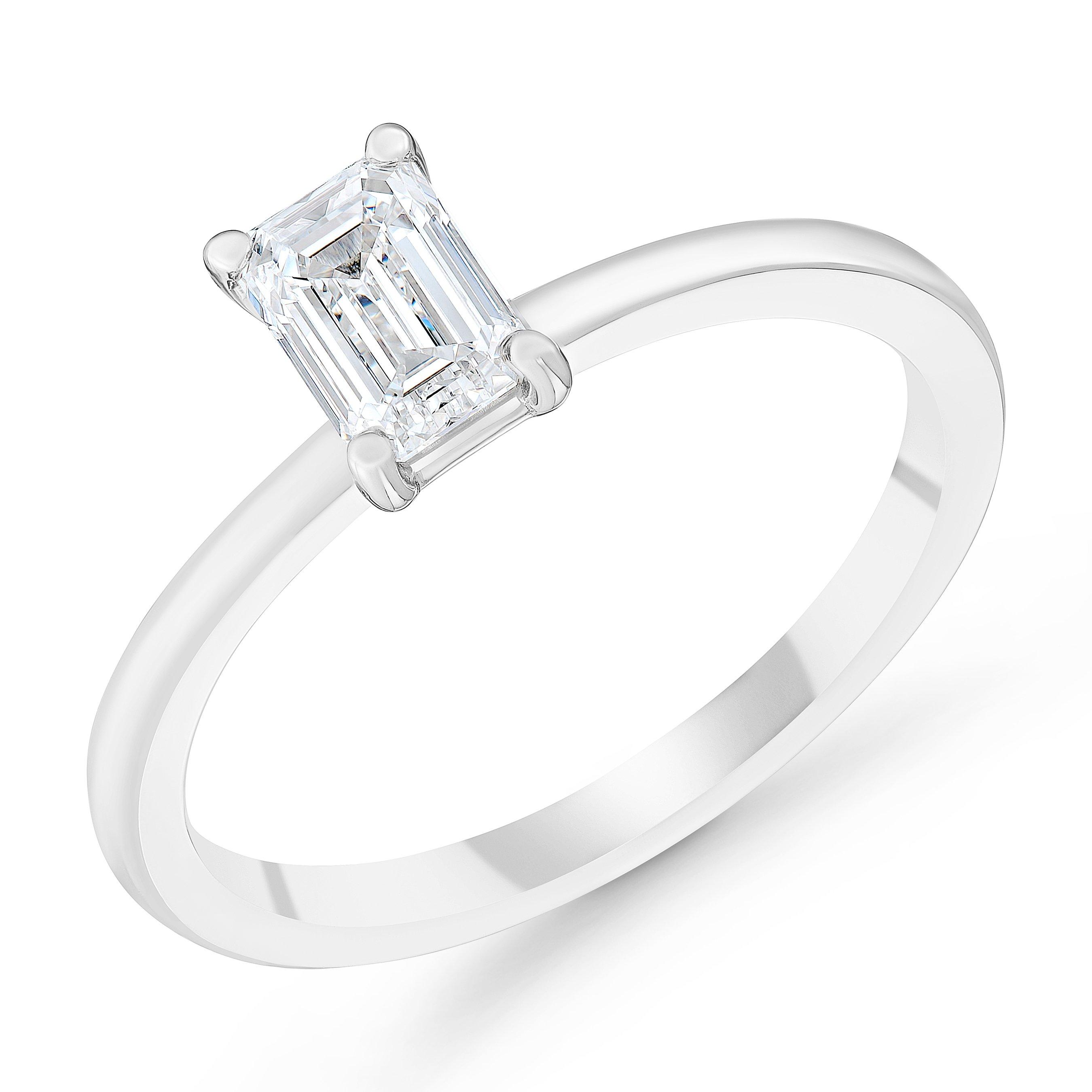 Platinum Diamond Emerald Cut Solitaire Engagement Ring