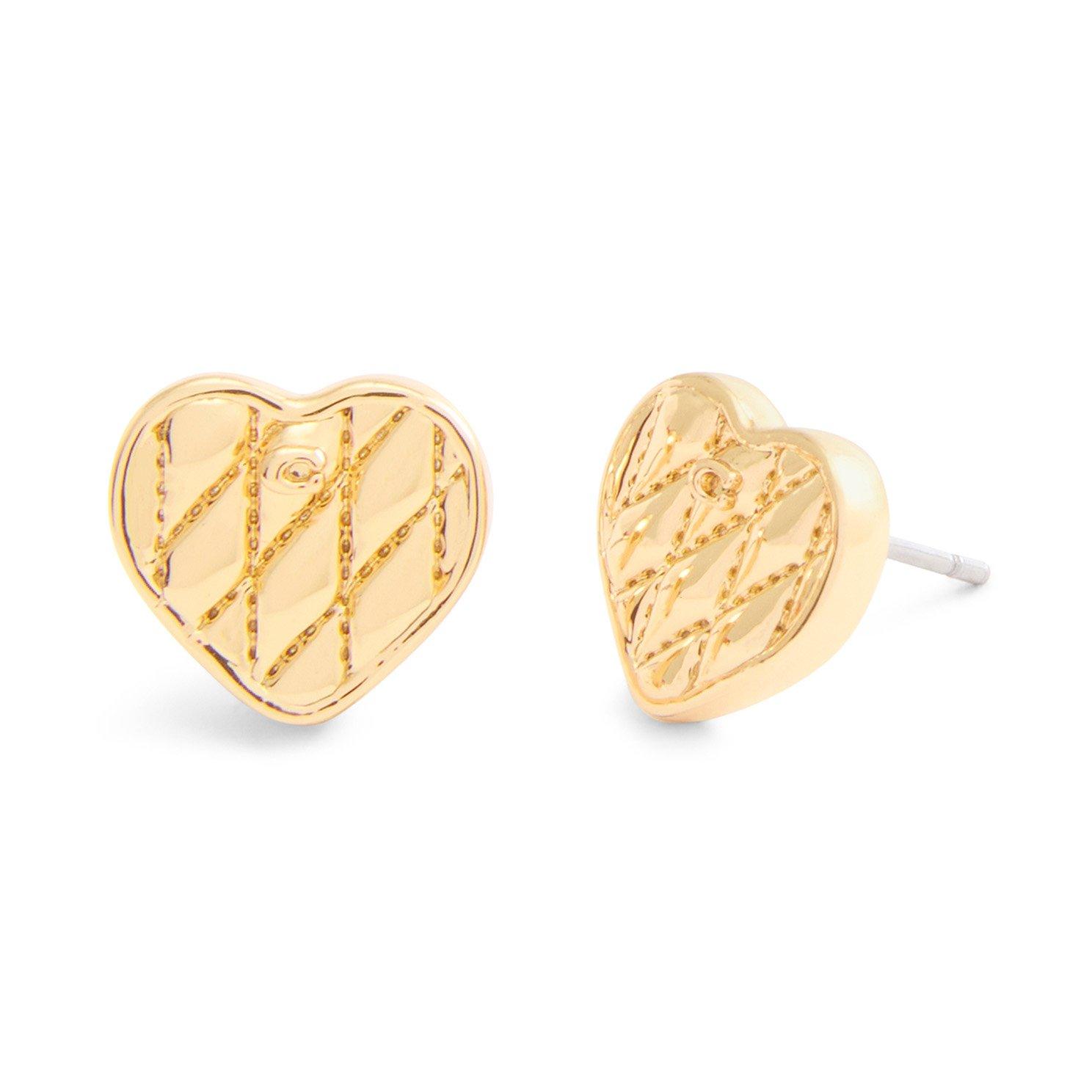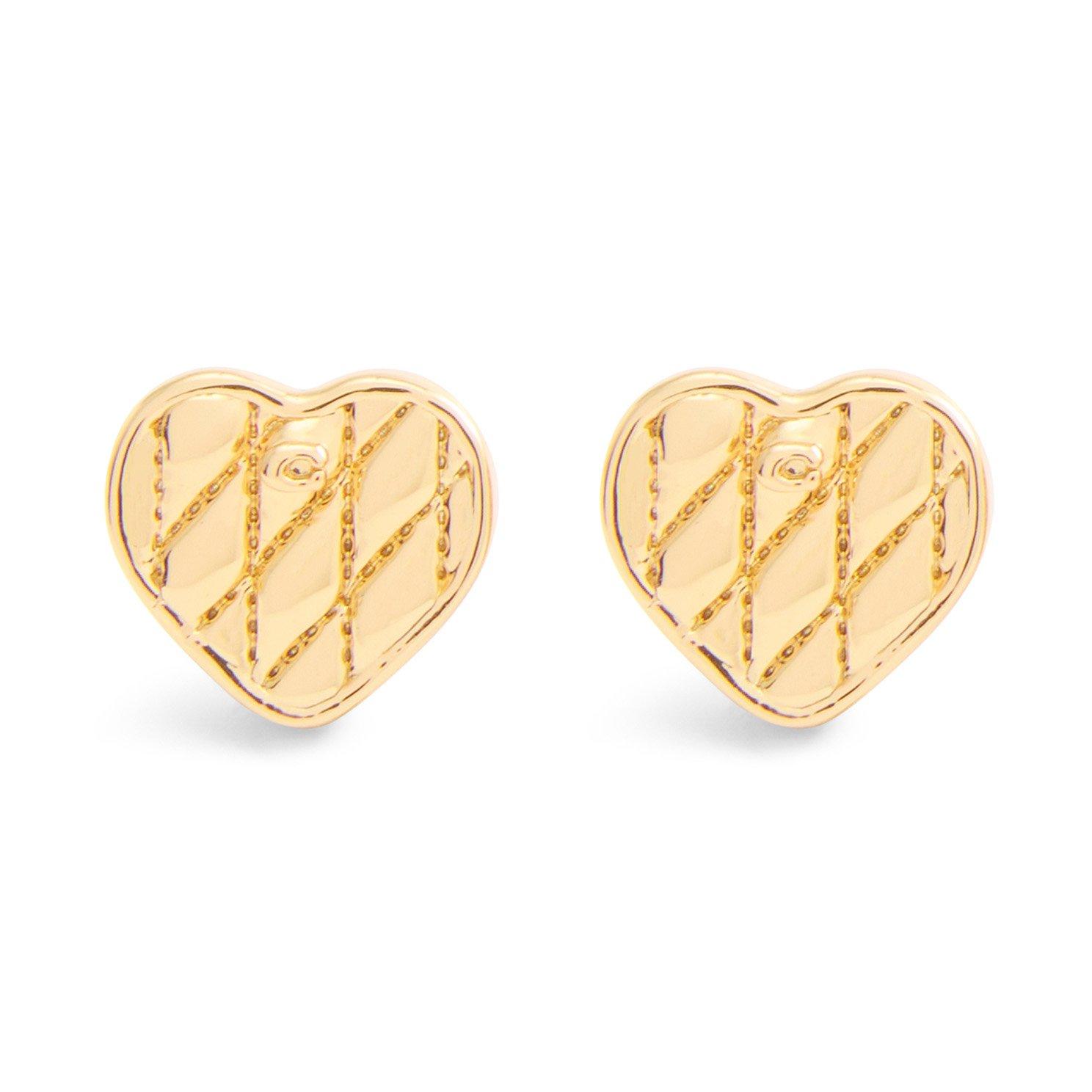 Coach Quilted Hearts Yellow Gold Tone Stud Earrings