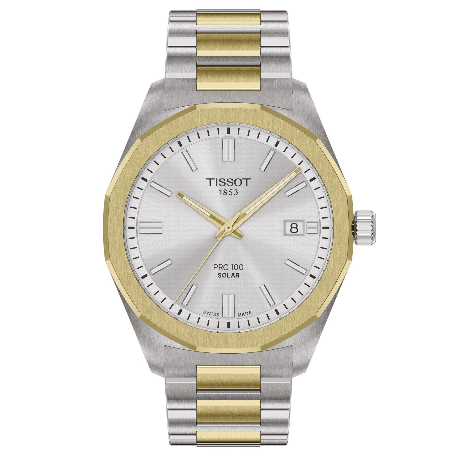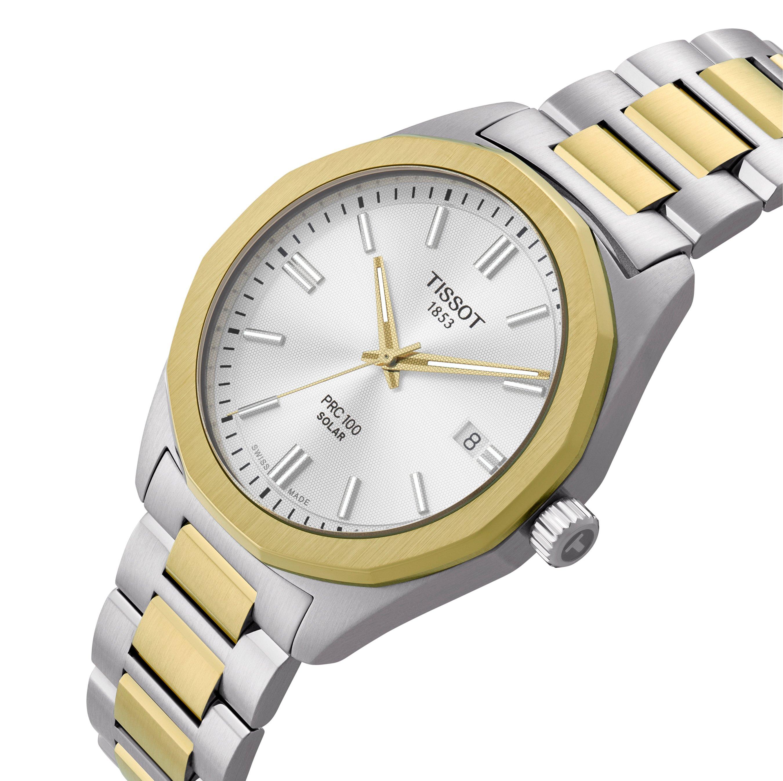 Reimagining a modern classic with clean design and cutting-edge efficiency, this Tissot PRC 100 39mm Stainless Steel and Yellow Gold PVD Solar Powered Watch strikes the perfect balance between contemporary style and everyday versatility.