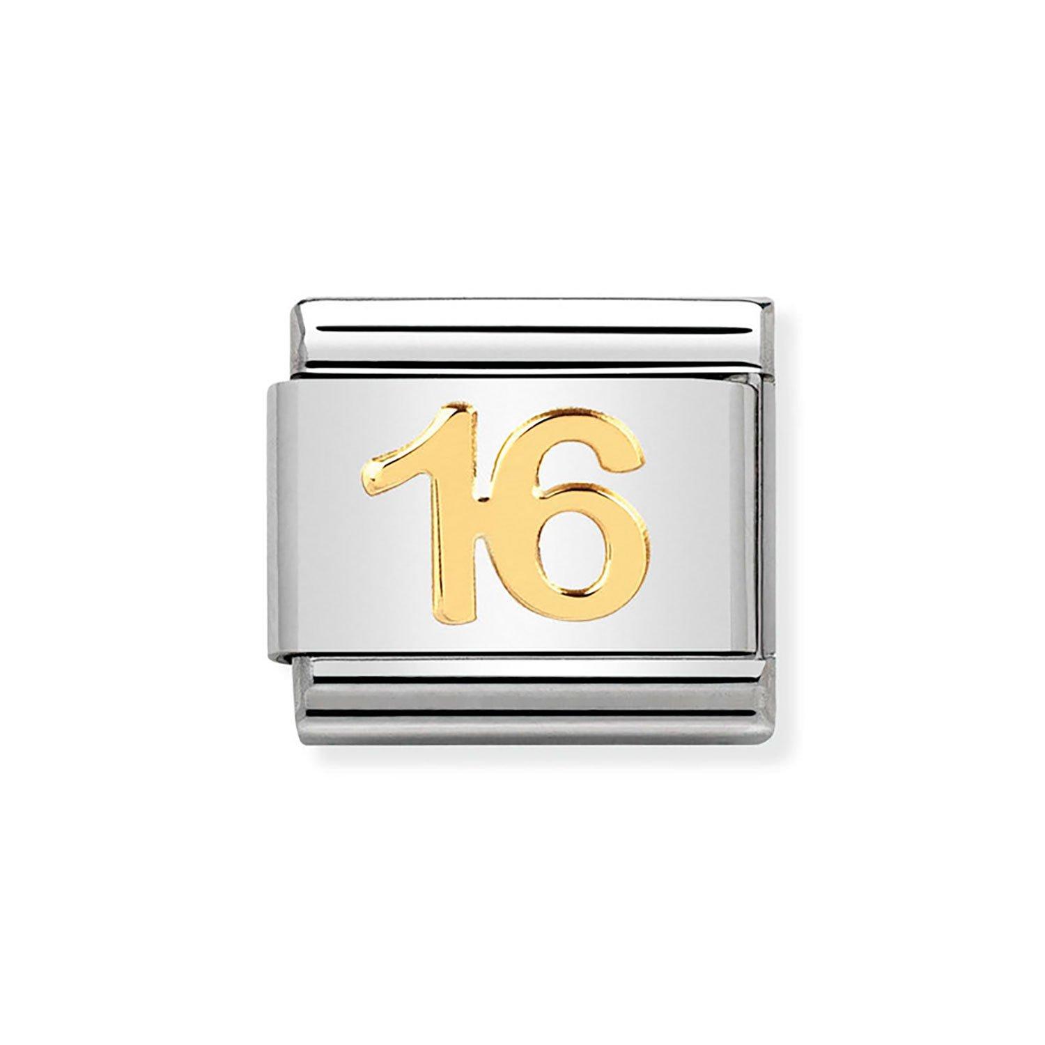 Shop CharmsMark a special age or milestone with this Nomination Composable Stainless Steel and Yellow Gold Plated 16 Charm. Featuring the number 16 in radiant bonded yellow gold, making it a striking addition to your bracelet. Perfect for celebrating birthdays, anniversaries, or personal achievements, this charm combines timeless elegance with the versatility of a stackable design.