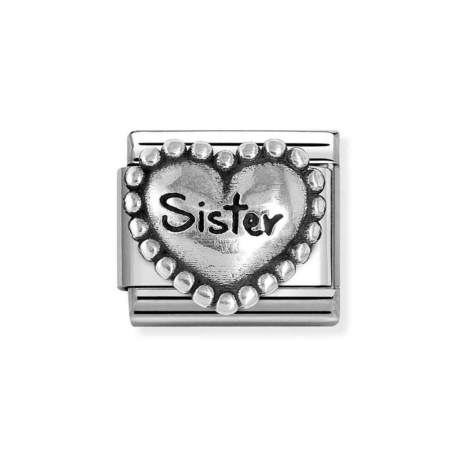 Shop CharmsCelebrating a bond like no other, this Nomination Composable Stainless Steel Heart Sister Charm is a timeless charm that captures the essence of love, family, and the unbreakable connection between sisters.