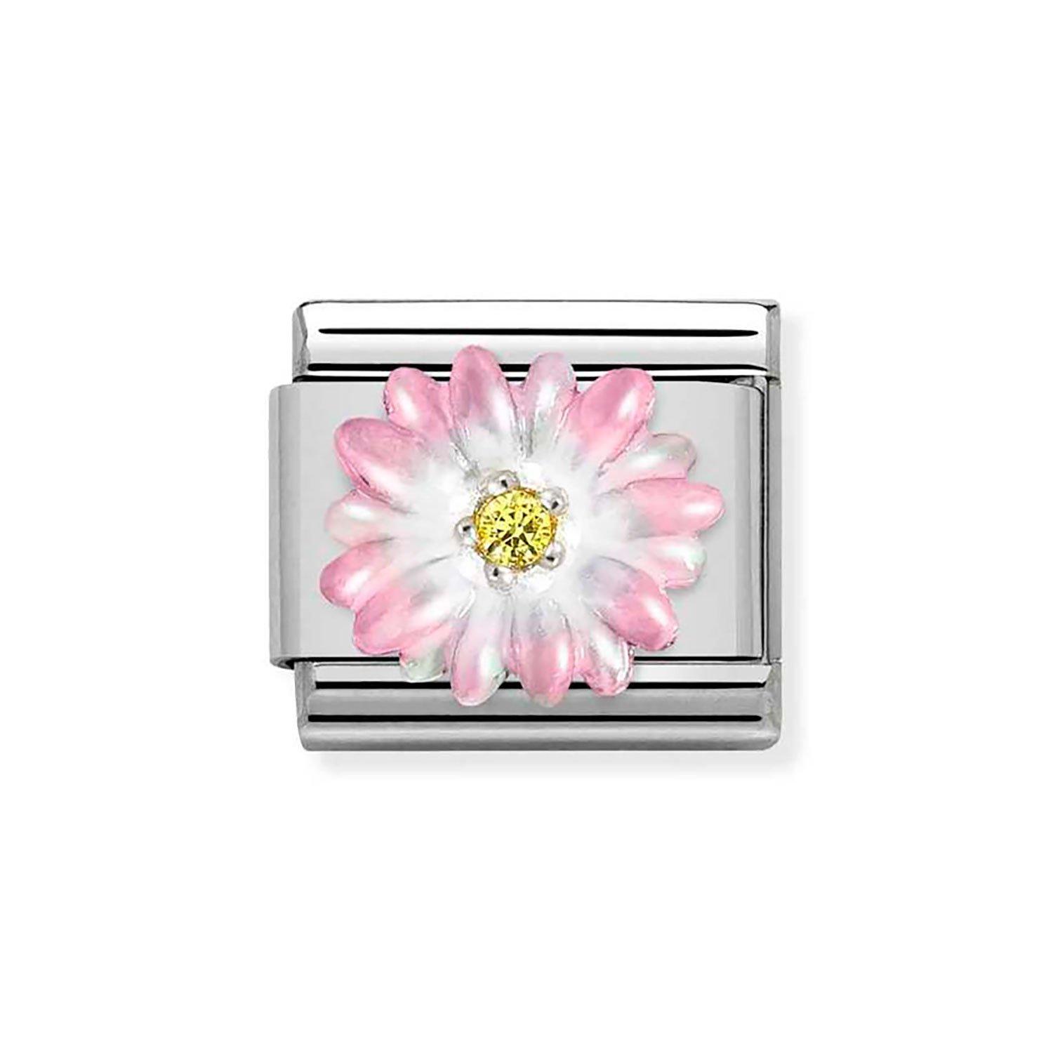 Shop CharmsAdd a vibrant touch to your bracelet with this Nomination Composable Stainless Steel Cubic Zirconia Pink Flower Charm, featuring a sterling silver flower with pink enamel petals and a radiant yellow cubic zirconia centre. Elegant and playful, this charm brings a cheerful pop of colour and shine to your customisable collection.
