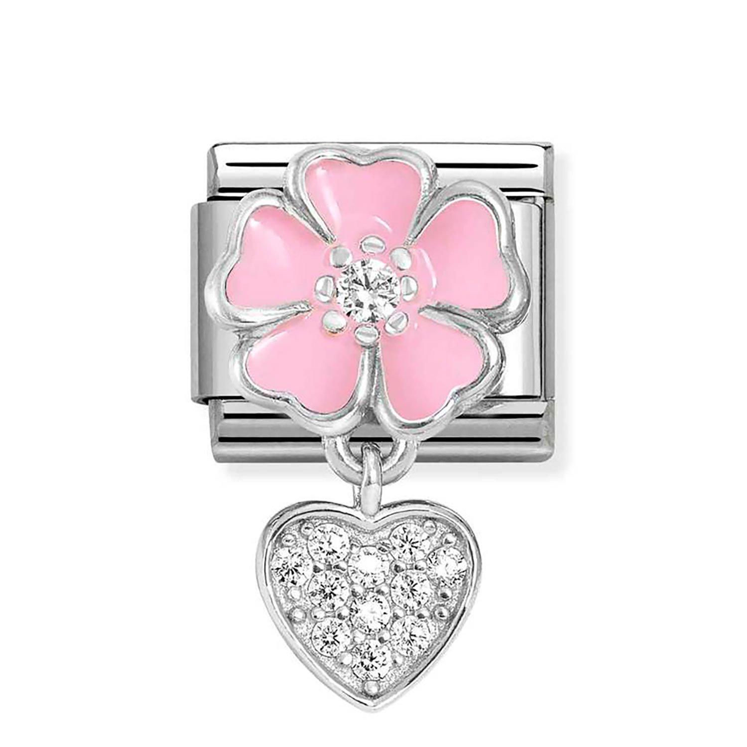 Nomination Composable Stainless Steel Cubic Zirconia Pink Flower and Heart Charm