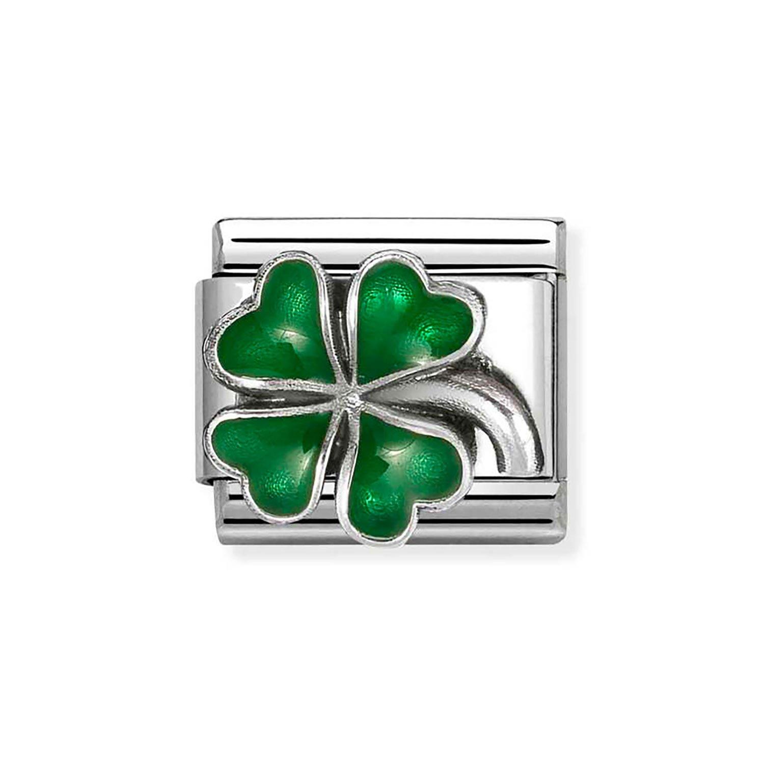 Shop CharmsAdd a hint of luck to your bracelet with this Nomination Composable Classic Stainless Steel Four Leaf Clover Charm. Featuring a silver clover symbol finished with a vintage effect and filled with rich green enamel, this design blends classic charm with modern style.