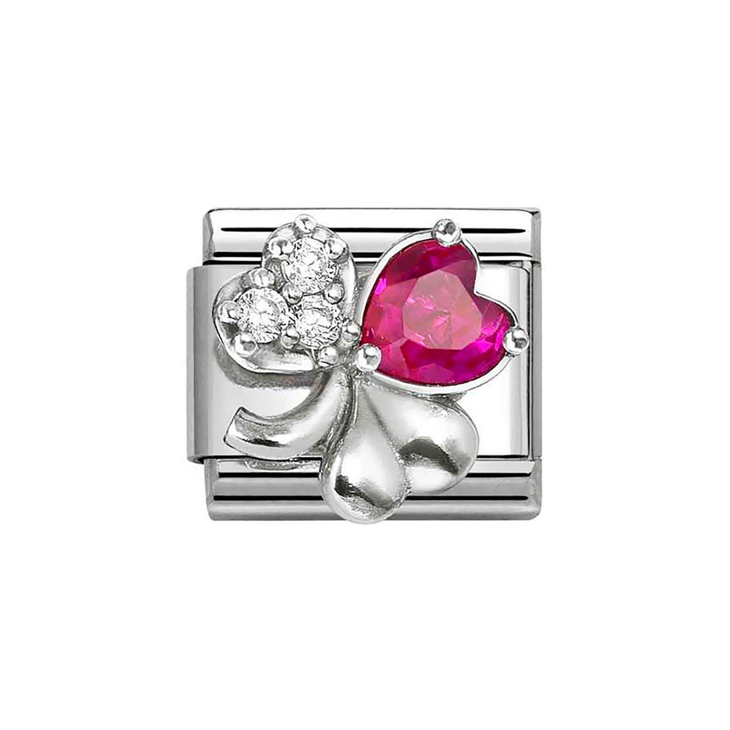 Nomination Composable Classic Stainless Steel Red Cubic Zirconia Clover Charm