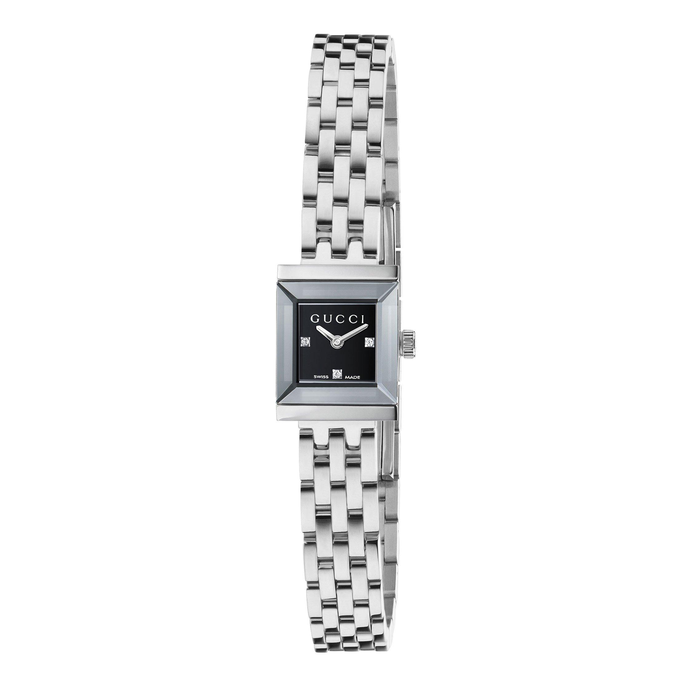 This Gucci G-Frame 18mm Diamond Ladies Watch splendidly combines luxury detailing with unmissable designer style. Featuring a unique square dial adorned with diamond hour markers, this timepiece is sure to make a bold statement.